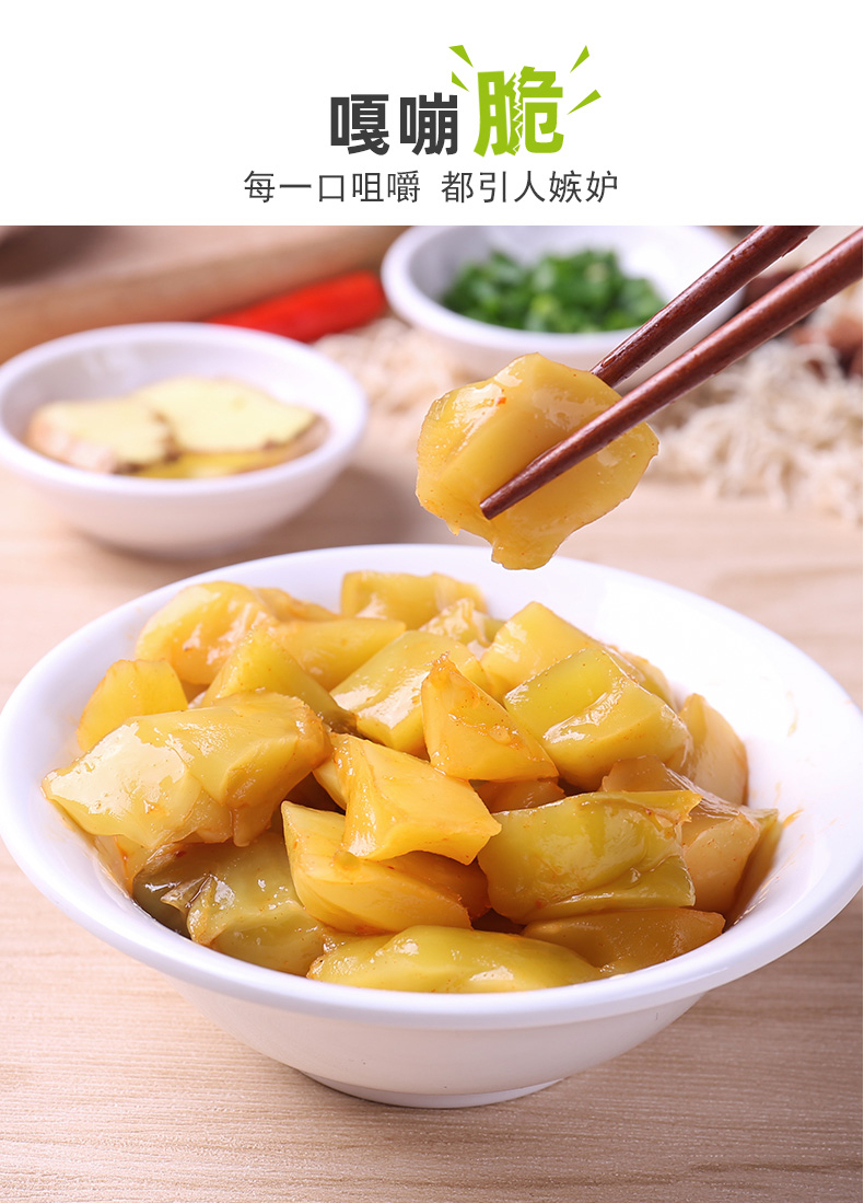 涪陵口口脆榨菜芯!精选优质好菜头,三腌三榨,口感咸淡适中,鲜香不辣,回口还带点甜~配粥、煮面都好吃!