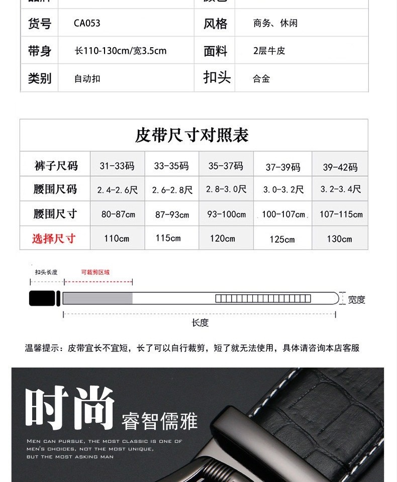 精选真牛皮材质,自动扣设计,质感牛皮,双倍耐磨!品质保障,商务休闲,时尚百搭,送父亲送男友,彰显品牌价值~【赠运费险】