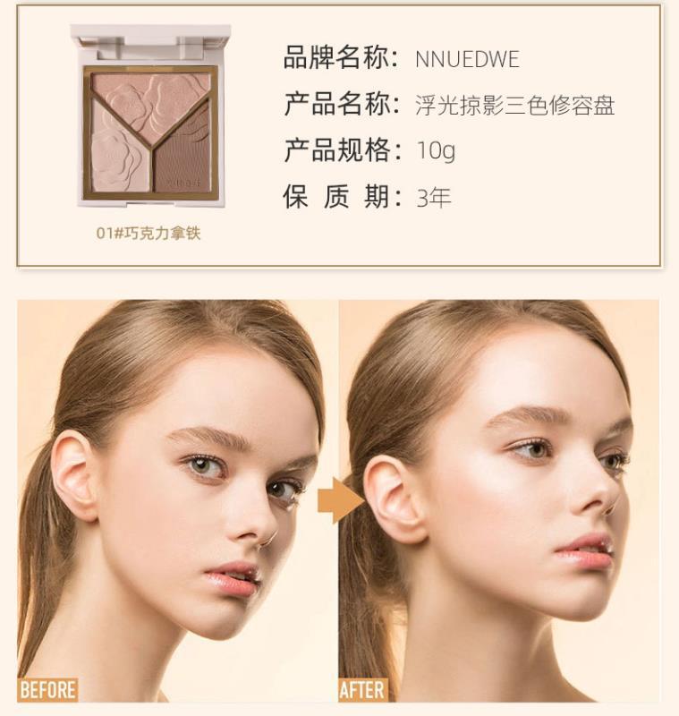 高光修容腮红,三色一体盘,高光,腮红,眼影,粉质细腻,自然红润,亲肤细腻,上妆立体自然防水不脱妆,限时促销!