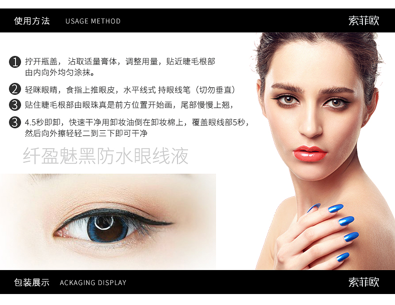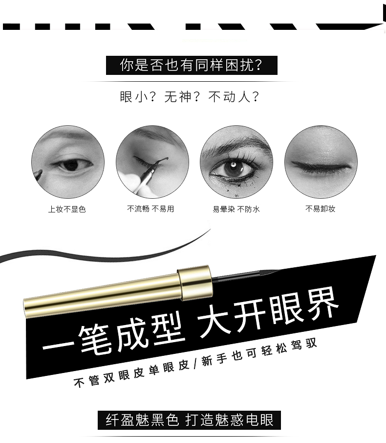 速干持久硬头彩妆,孕妇初学者,眼线液笔,精灵双眸,速干不易晕染,持久防水防汗。