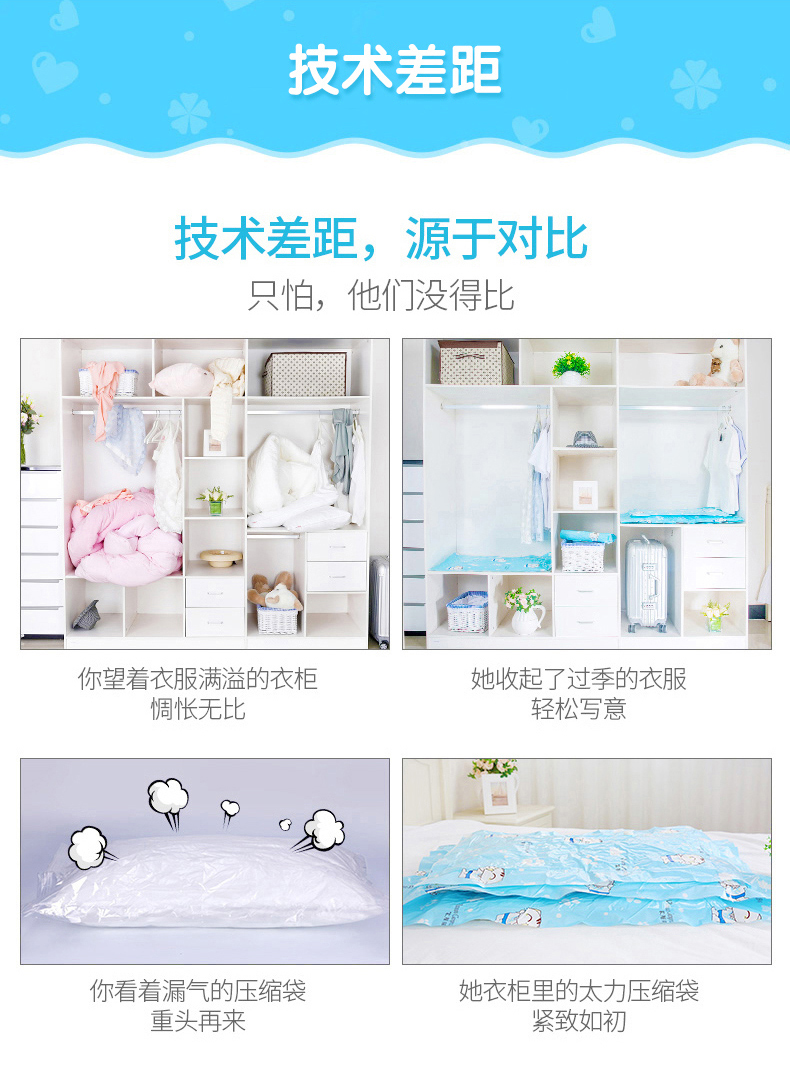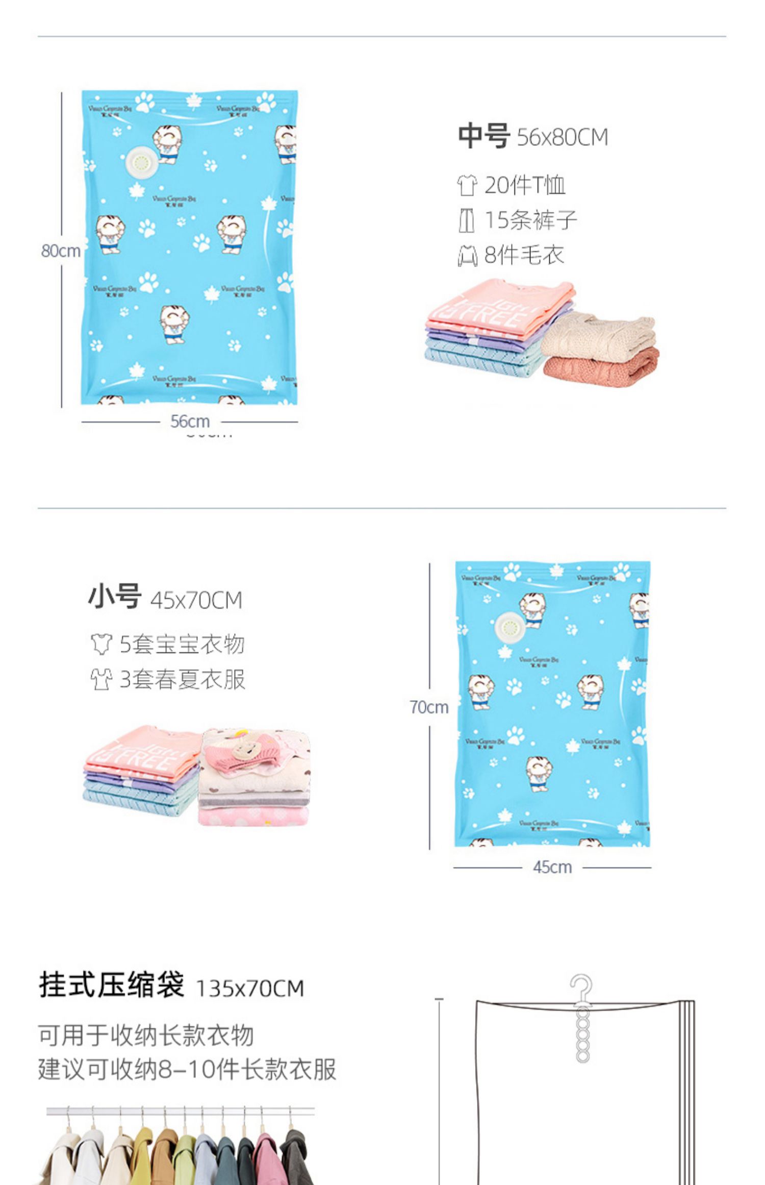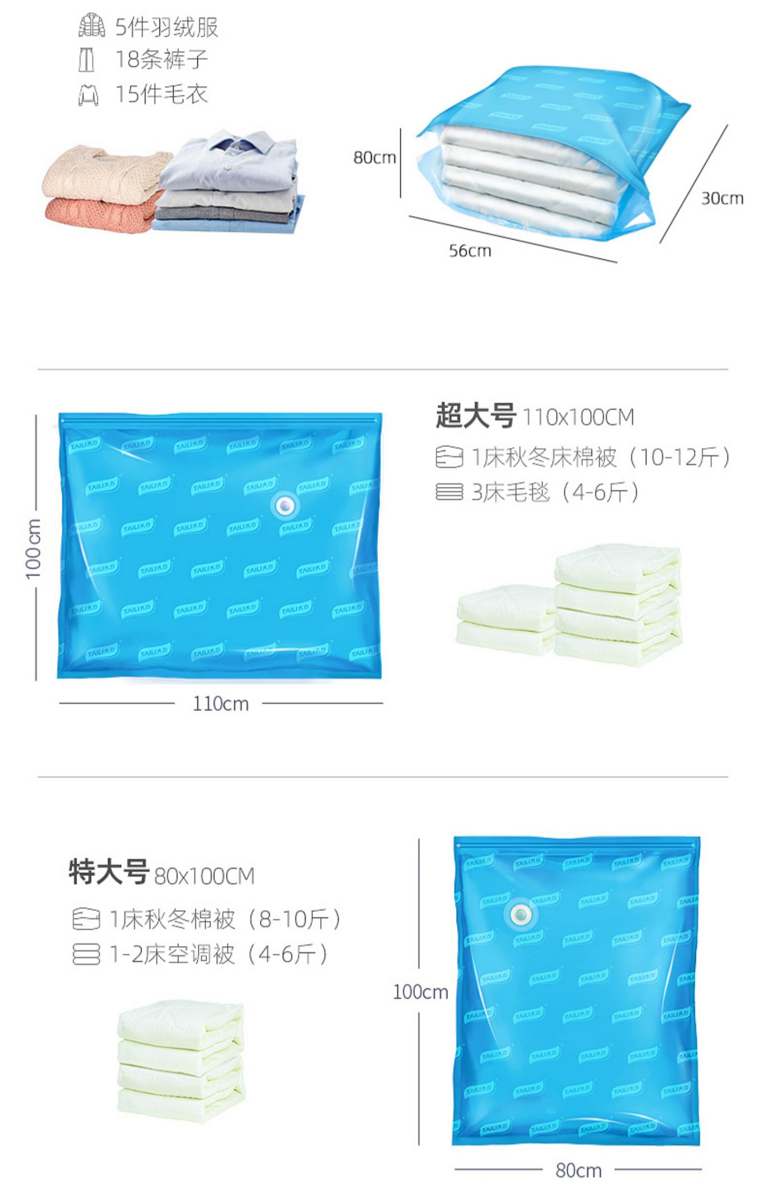 【赠运费险】换季收纳神器!太力真空压缩袋6件套!全新升级气阀,只出气不出气,有效防止漏气情况~连12斤的厚棉被都可以轻松收纳!超值6件套,只要19.9!快囤~