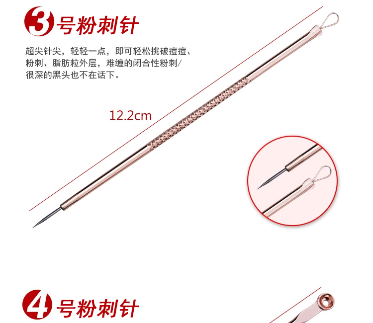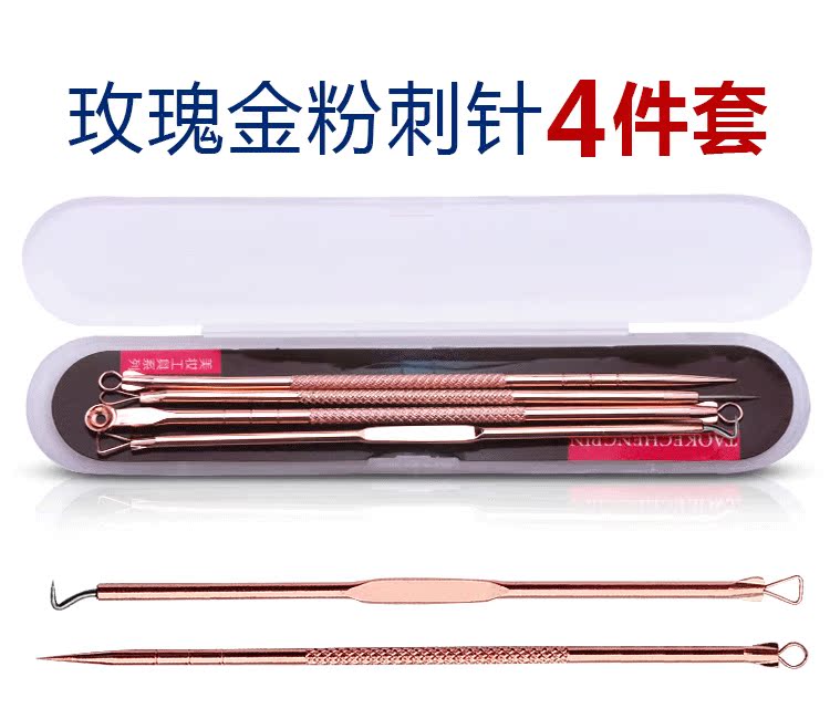 【送消毒棉+收纳盒】超尖基础款玫瑰金粉刺针4件套装,医用级别材质,适用于粉刺、黑头、脂肪颗粒、痘痘等,贴心设计不伤皮肤,美容师的神器,安全卫生不留痕【正品保证、过敏包退、包邮】
