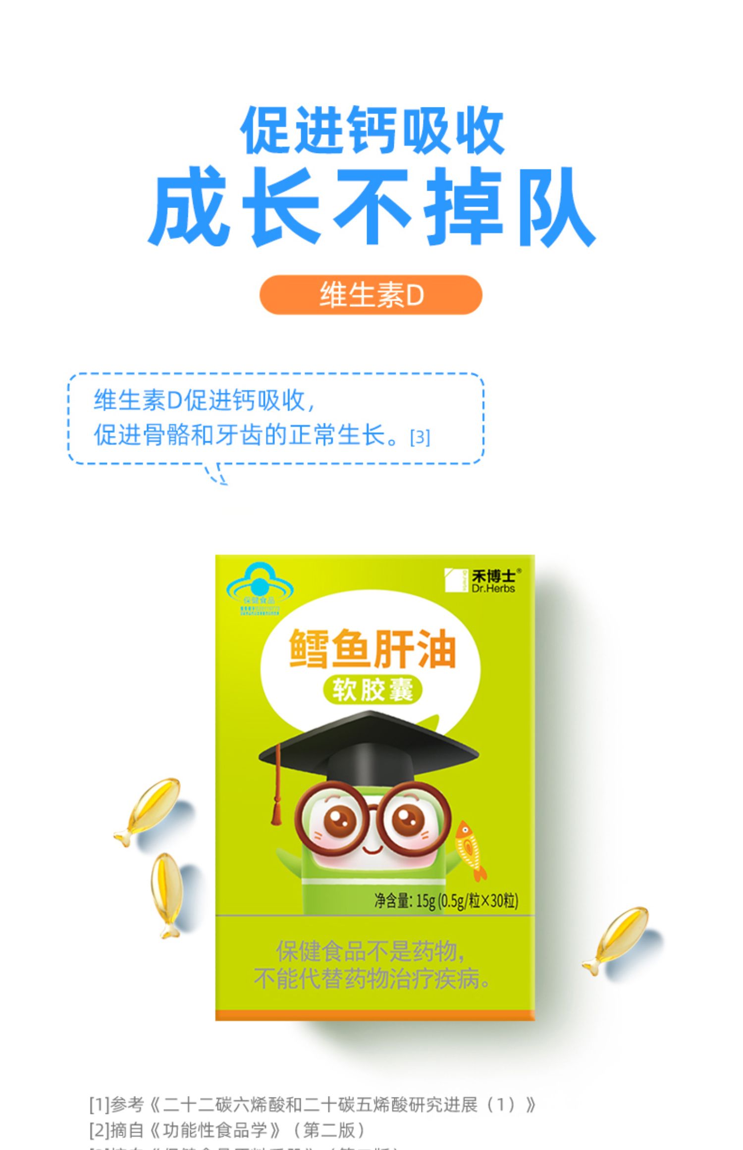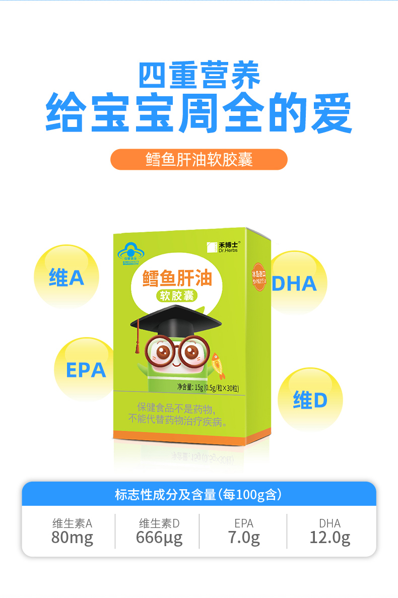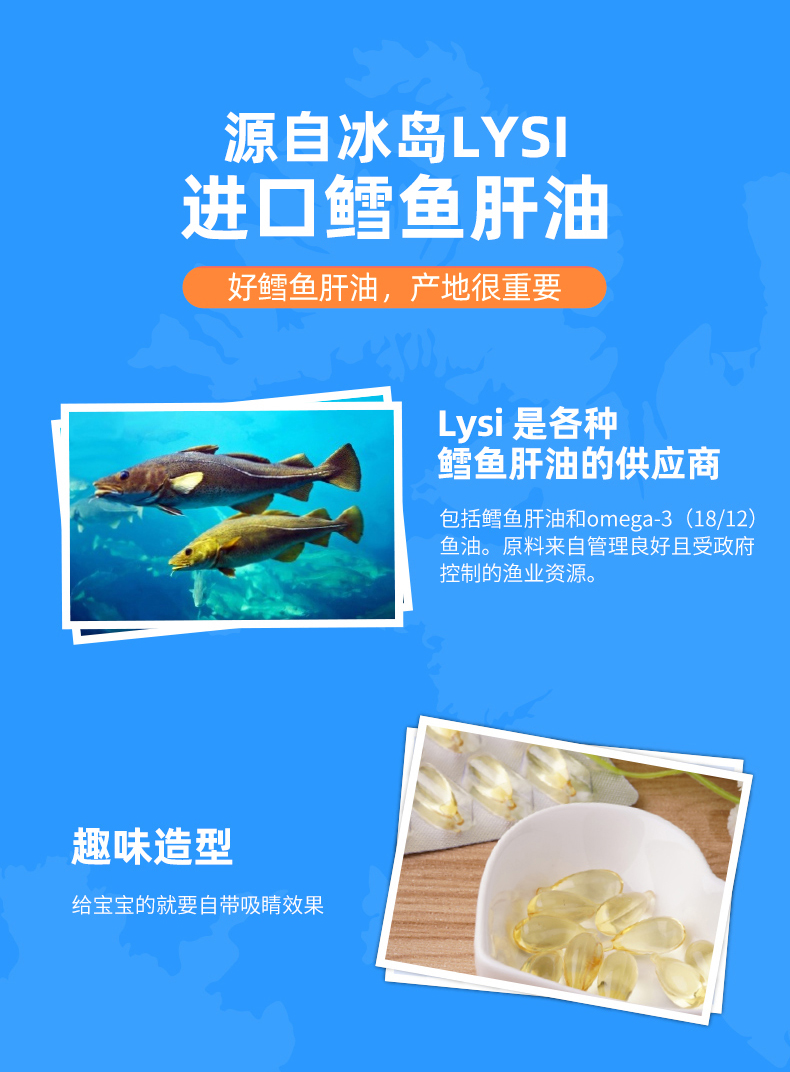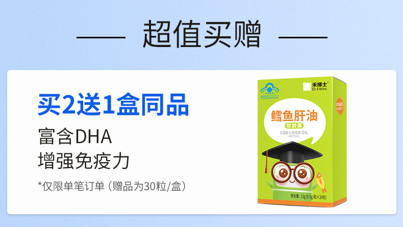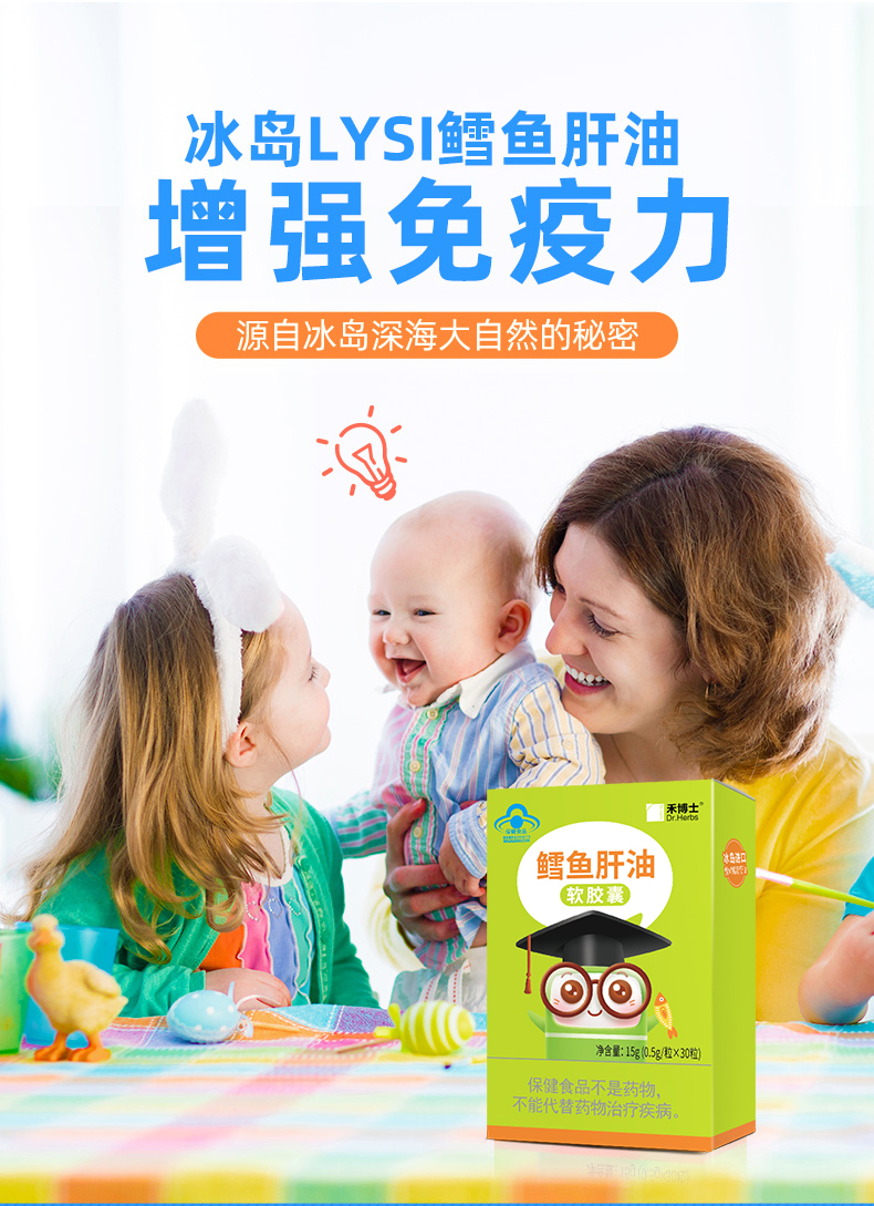 【买2送1】源自冰岛LYSI进口~黄金搭档兄弟品牌,脑白金公司~禾博士肝油软胶囊!一粒补充维A,维E,EPA,DHA四重营养~促进钙吸收~调节免疫力,让宝宝身体更棒!