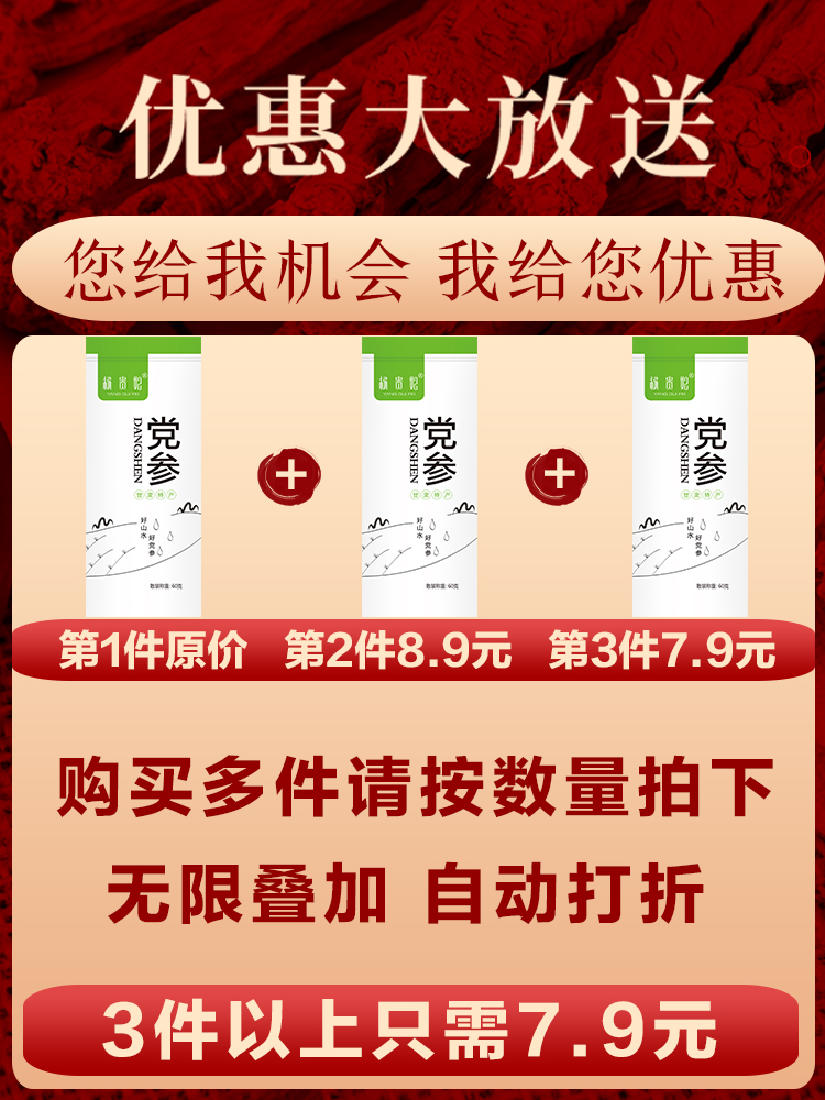 【第二件8.9,第三件7.9元!拍3件超划算!买的多,减的多】甘肃原产,多年生特级党参!人工采挖,自然晾晒,足干没有水份,无熏硫更健康,补中益气,增强机体抵抗力,每天一杯,元气十足【赠运费险】