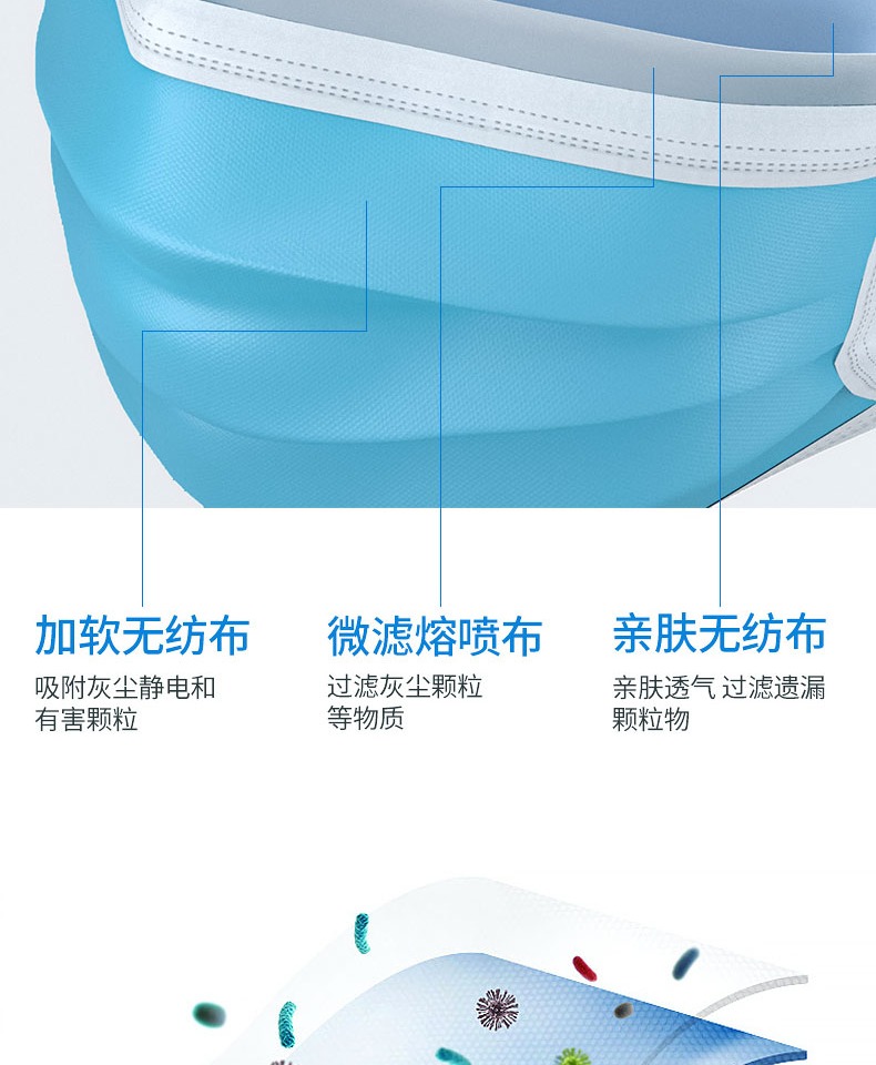 三层加厚款防护更安全,三褶设计,阻隔外界飞尘,飞沫~空间大,合格证书齐备!防疫必备,呵护您的安全!一只不到2毛钱,防疫必备!!