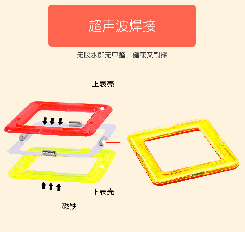 优选强劲永磁吸力大可提拉,abs环保材料安全无异味,超声波焊接,光滑圆润~开发孩子创造力想象力。