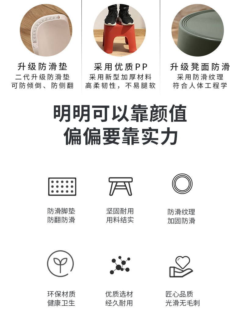 【4.9超高评分】月销2.5w,精选优质PP原料,小巧便携,高强承重,久坐舒适,防滑耐磨,经久耐用,耐寒耐热,居家必备,更适合儿童的凳子!给宝宝的选ZUI好的!