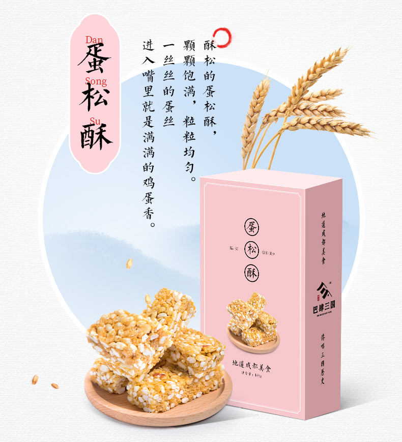 【第2件半价】巴肆三国鸡蛋肉松蛋松酥1袋208g!好味道入口不忘,地道成都美食,传统工艺,精选上好配料,浓郁口味营养健康,无限满足你的味蕾,让你吃了还想吃~