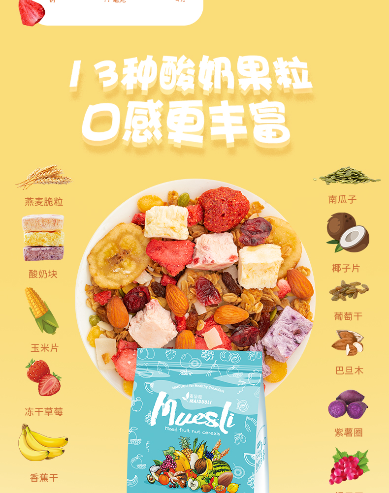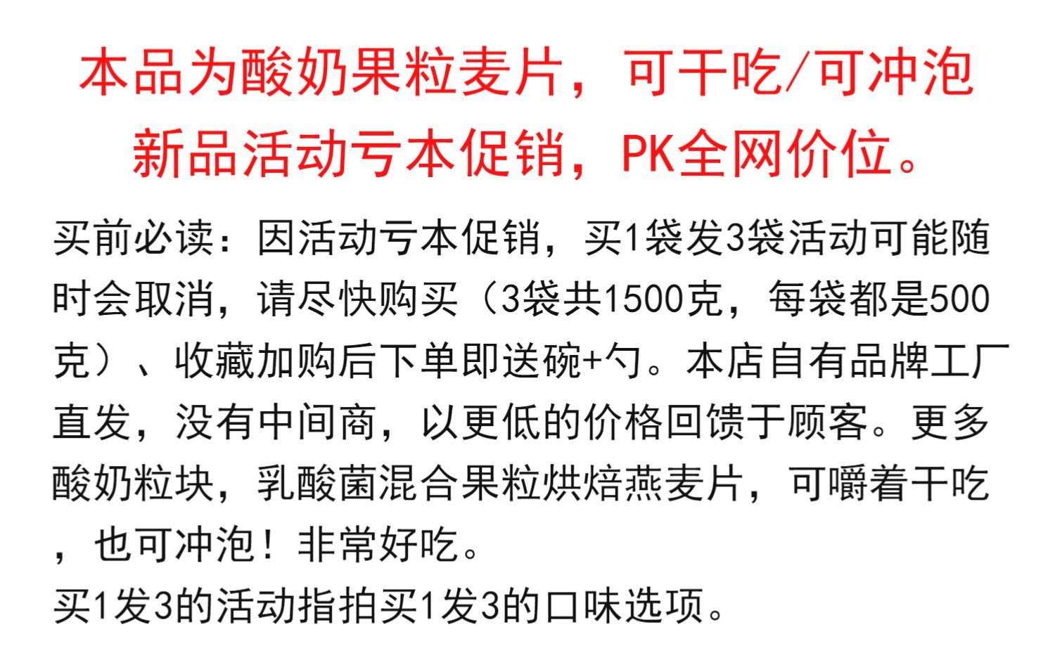 【历史新低】麦朵粒酸奶网红干吃麦片,每袋500克超实惠,2袋只要24.9,大果粒多营养,酸甜酥脆,匆忙工作也要好吃营养的早餐,代餐减肥就是它了!