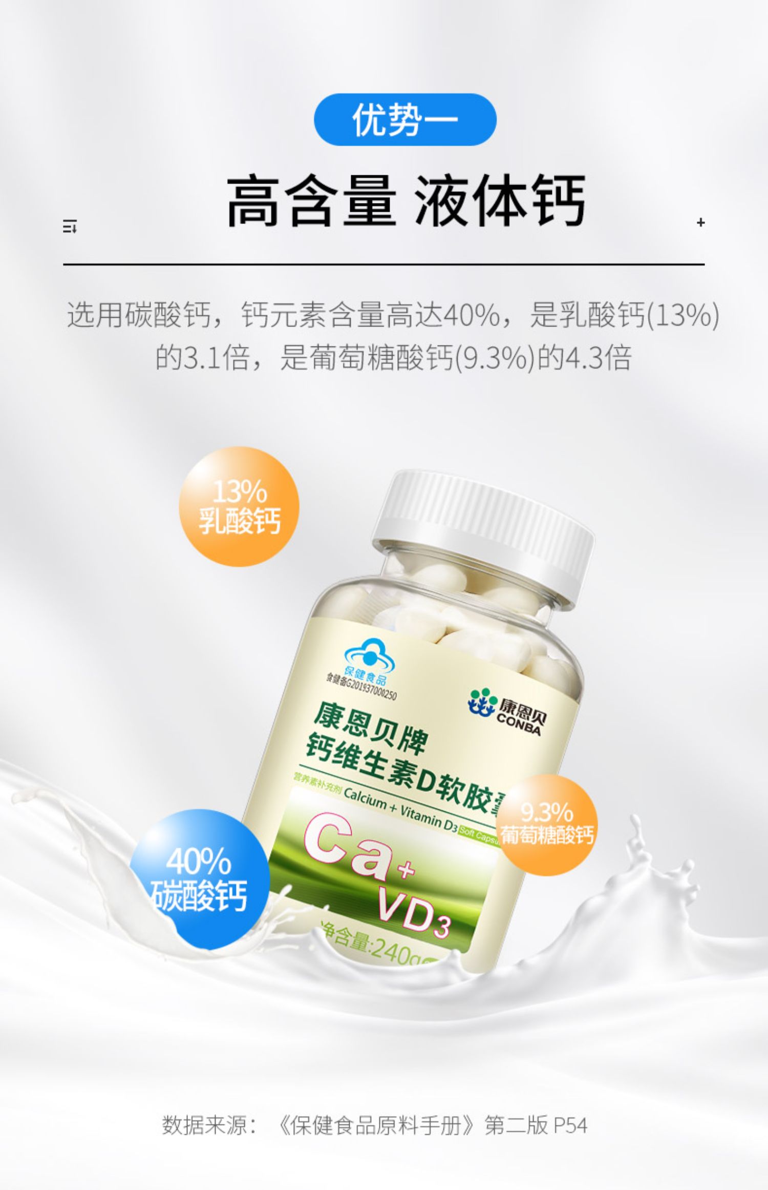 4.9分好评【康恩贝官方旗舰店,2瓶共400粒!】专注健康30年,一次补充维生素D和碳酸钙,一粒康恩贝钙D的核心营养素等于300毫升牛奶,1500毫升豆奶,液体钙,易吸收【赠运险】