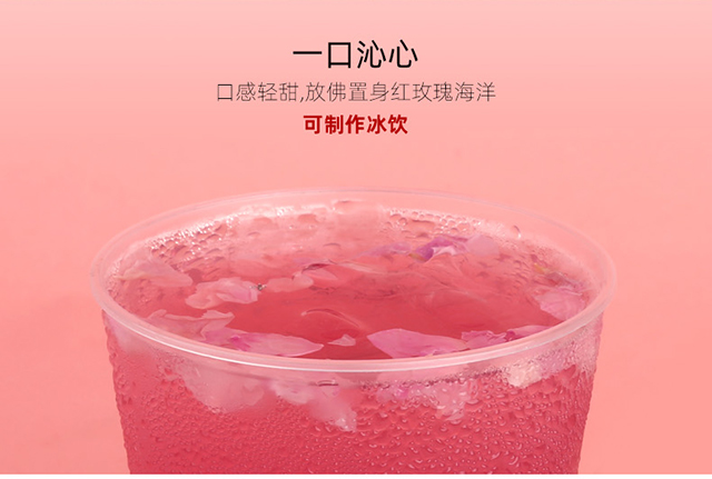 重瓣玫瑰花;香浓郁口;感柔顺茶色清凉浓郁,口感甘甜清香,美容焕颜,经期规律;在素年锦时的光阴里,绽放你的美丽!芳香馥郁;瓣多瓣厚,品质优良,是可食用的玫瑰!
