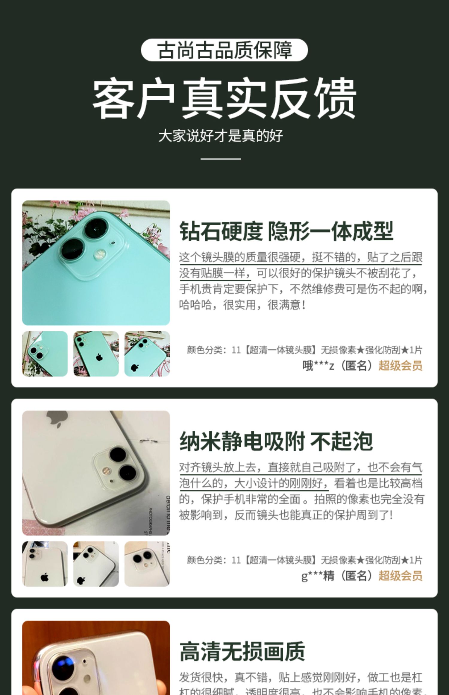 iphone全系列全覆盖镜头膜║¥7.8,360°全包覆盖,8倍吸附,耐磨不翘边防刮花,高清无损原机画质,快给你的爱机贴个好膜啊~