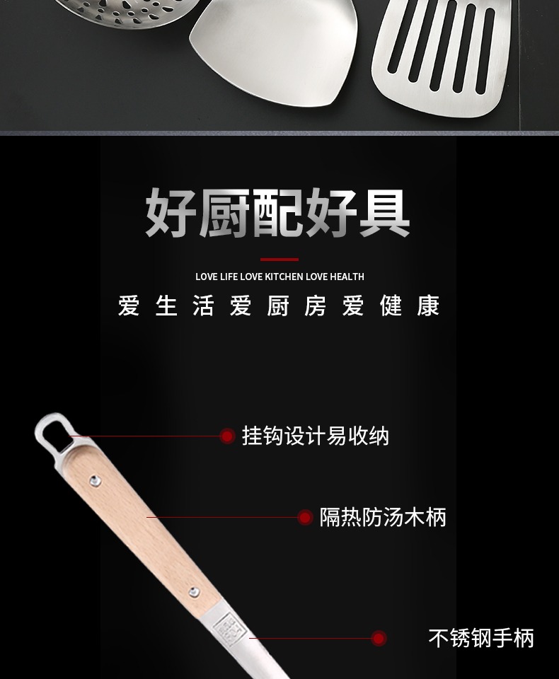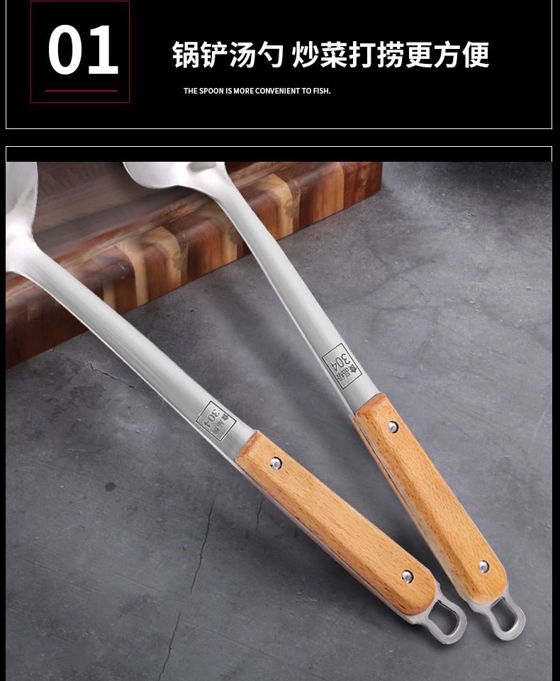 【禾易】【送挂钩】304不锈钢木柄锅铲,老牌子,值得信赖,木制防烫手柄,悬挂式设计,收纳方便,超厚不锈钢层,易铲,耐用!~轻松厨房,轻松到家!~【限时冲量】【特别推荐】