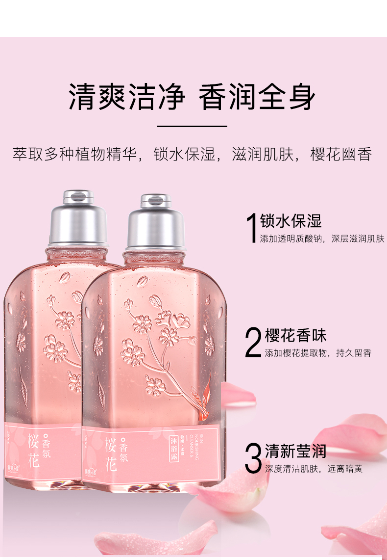 【拍三件】樱花愉悦香氛,经典滋润,清洁温柔,保湿锁水,泡沫丰富,解决皮肤缺水粗糙,持久留香呵护每寸肌肤,呵护全家健康!