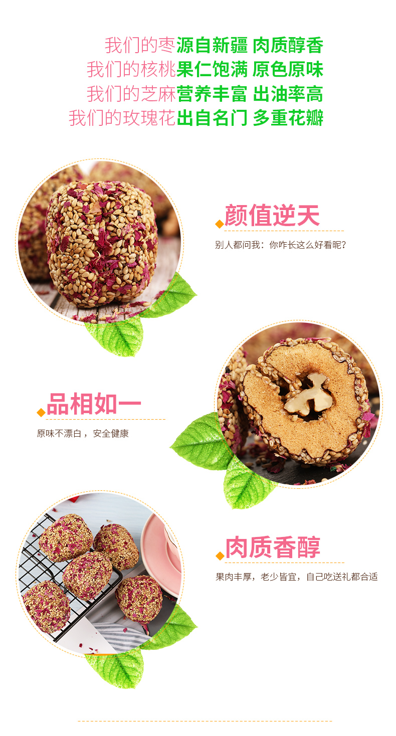 枣夹核桃收到啦!超大一袋一口咬下去,闻着花香吃着果香吃起来甜甜糯糯的,好多芝麻啊我一口气吃了两三个,500g礼盒送人可选超爱的!!七天无理由退换!