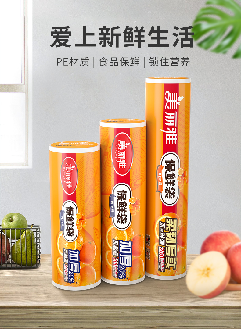 【美丽雅】家用保鲜袋!!采用PE材质,全新升级,断点式设计,安全无毒,防止串味又耐冷耐热,冰箱微波炉都可使用,尽情享用新鲜健康美食滋味!!