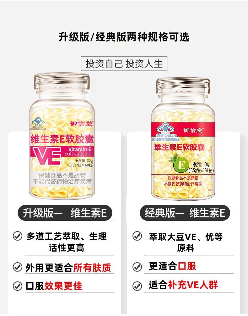 【拍一发三】线上线下累计销售100W瓶,御信堂维生素E软胶囊!线下一瓶78,有蓝帽子认证的,放心吃~萃取天然大豆精华,每日吃1粒,美容养颜,抗衰老,还能提高免疫力,越吃越青春!【赠运费险】