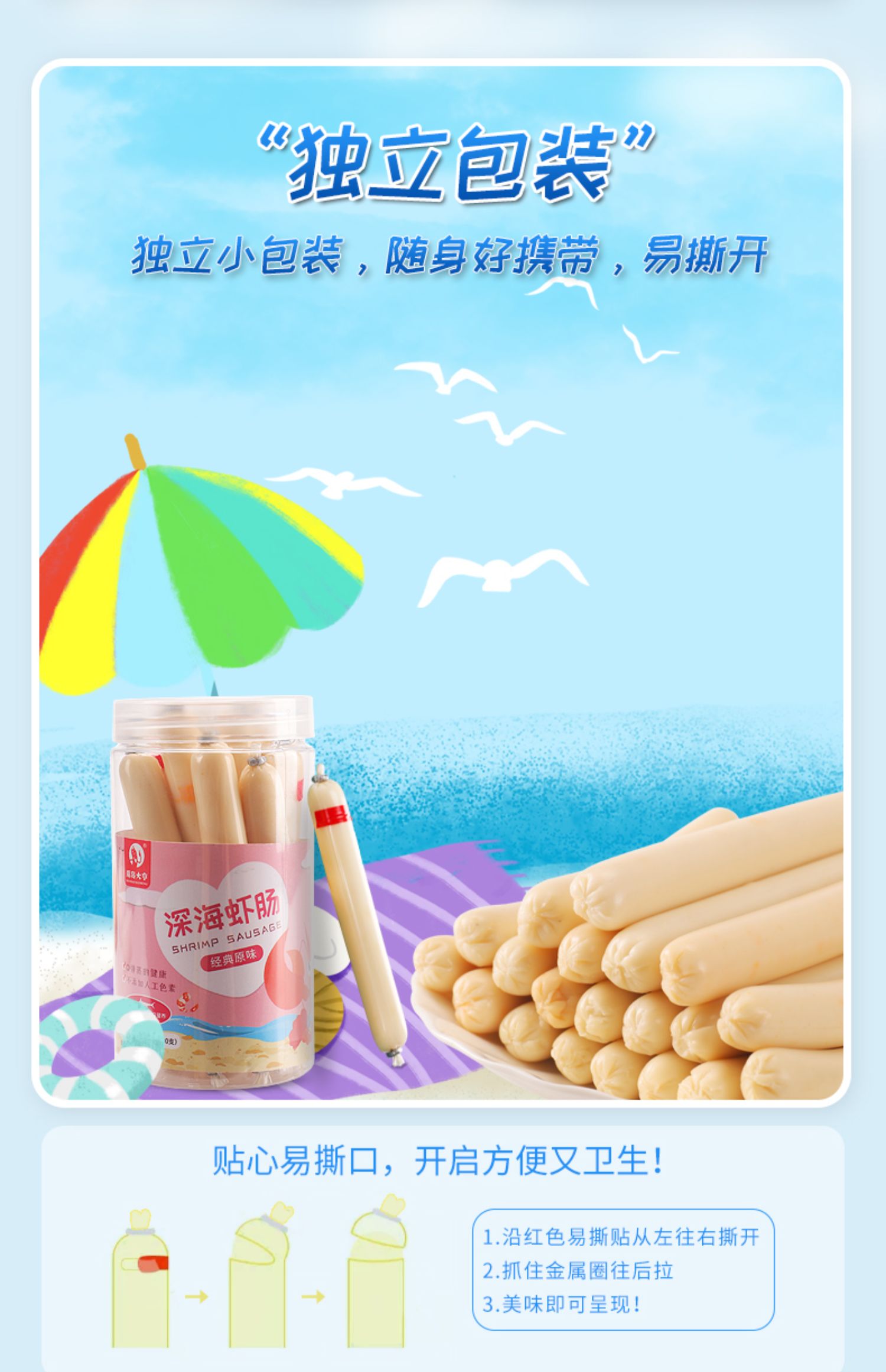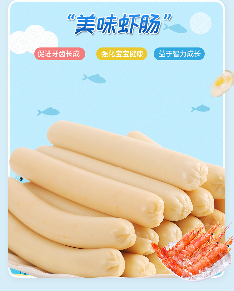 【日期新鲜,拍三件】第2份第3份0元!!!宝宝即食海味虾肠,Q弹美味,细腻嫩滑,鲜香美味,营养价值高!独立包装,开袋即食!不添加防腐剂,营养更健康!!【破损包退】