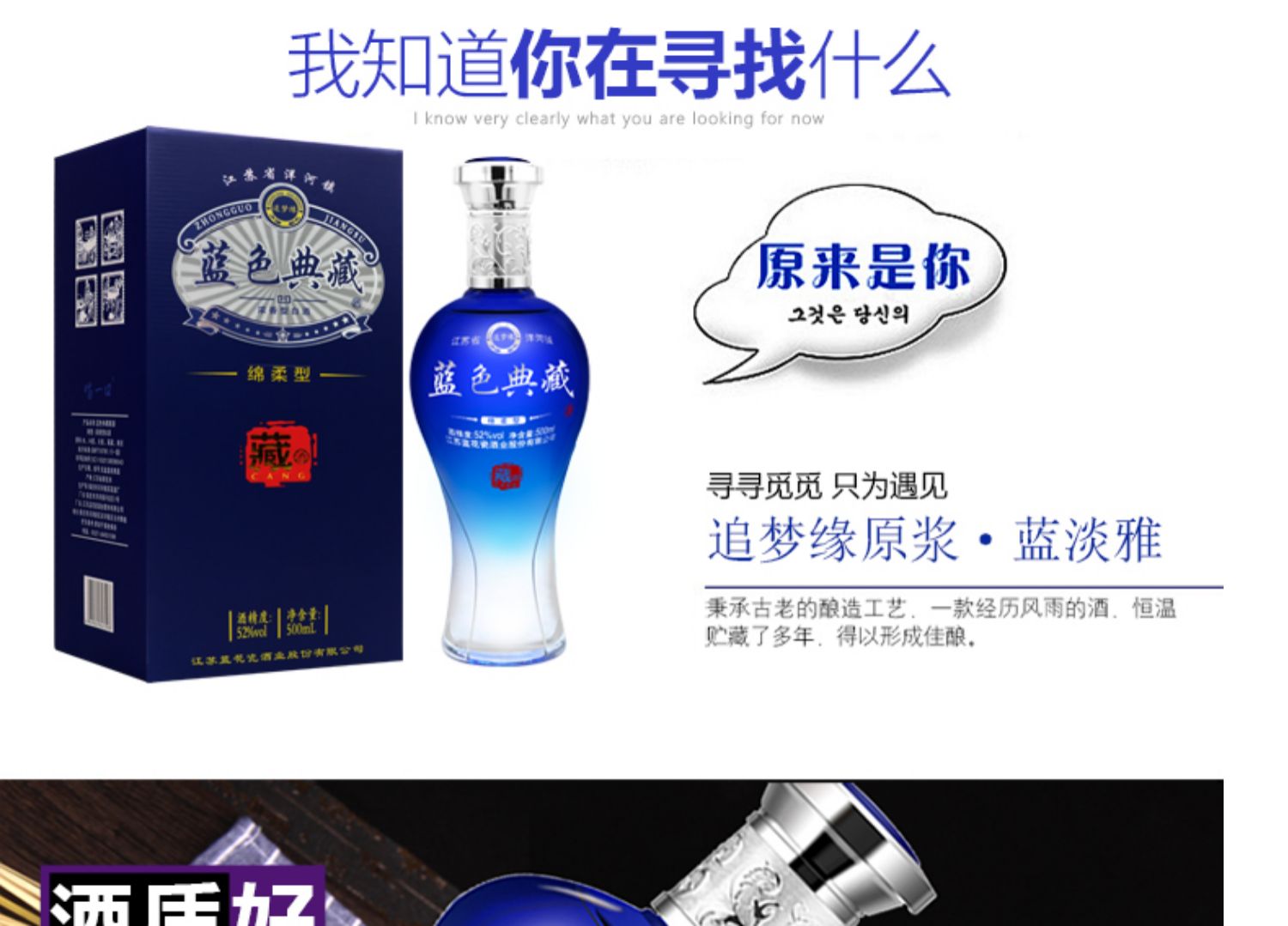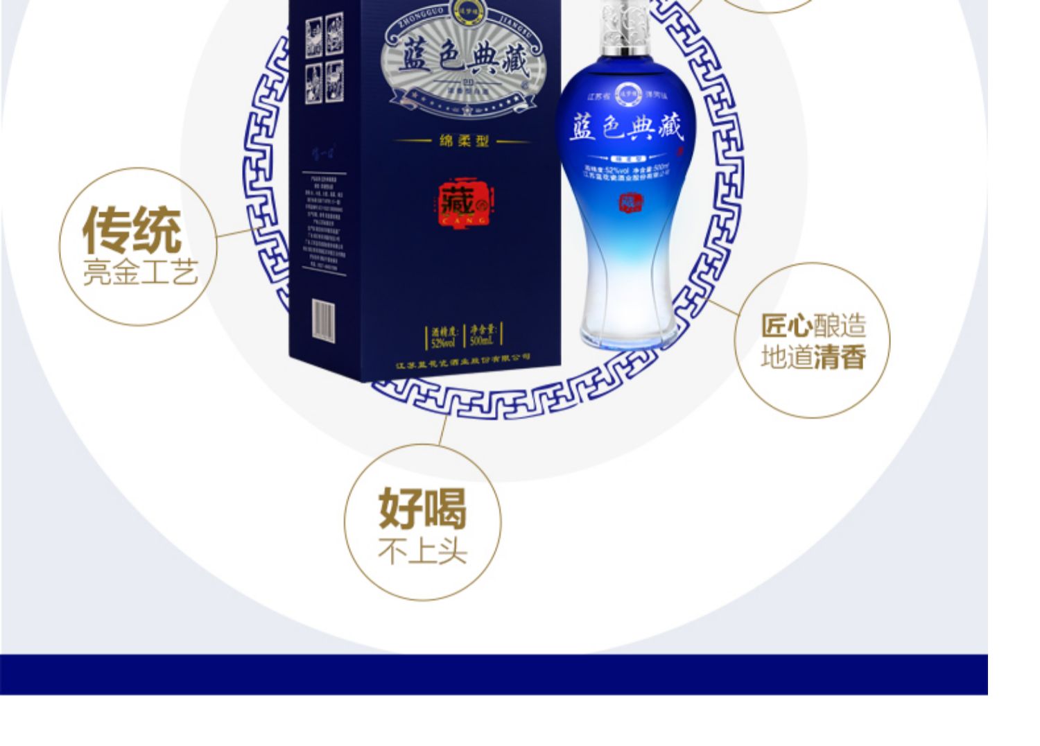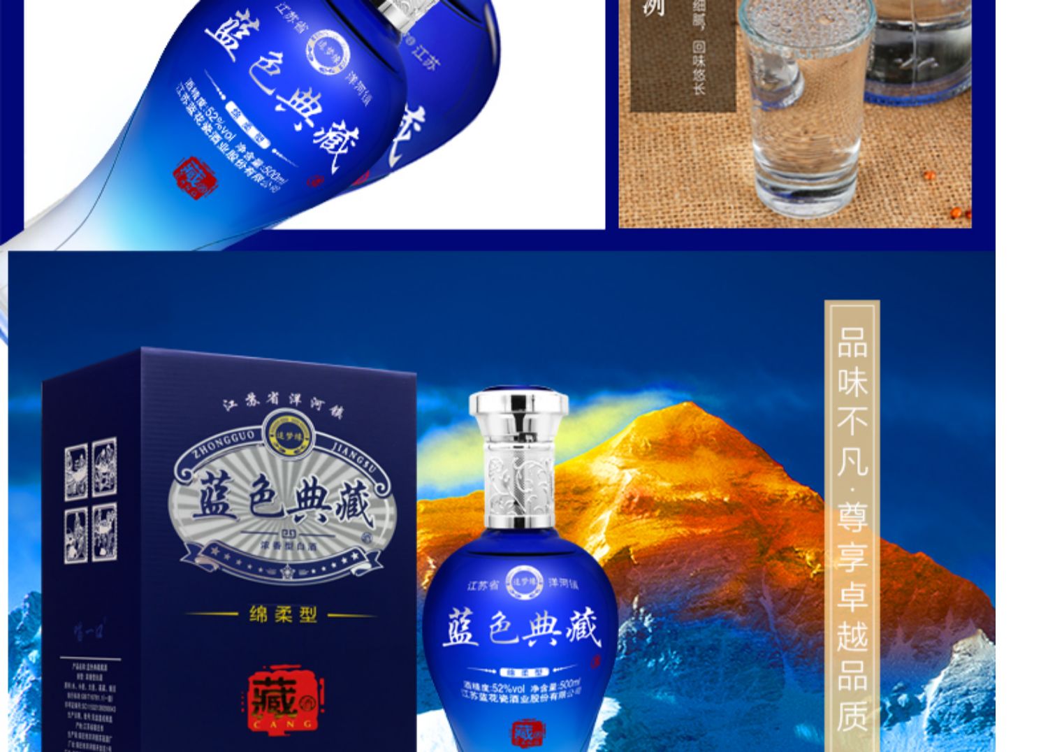 蓝色典藏浓香型白酒,52度500ml*6瓶,超划算,醇香,多粮,高雅,韵味。原生态高粱!