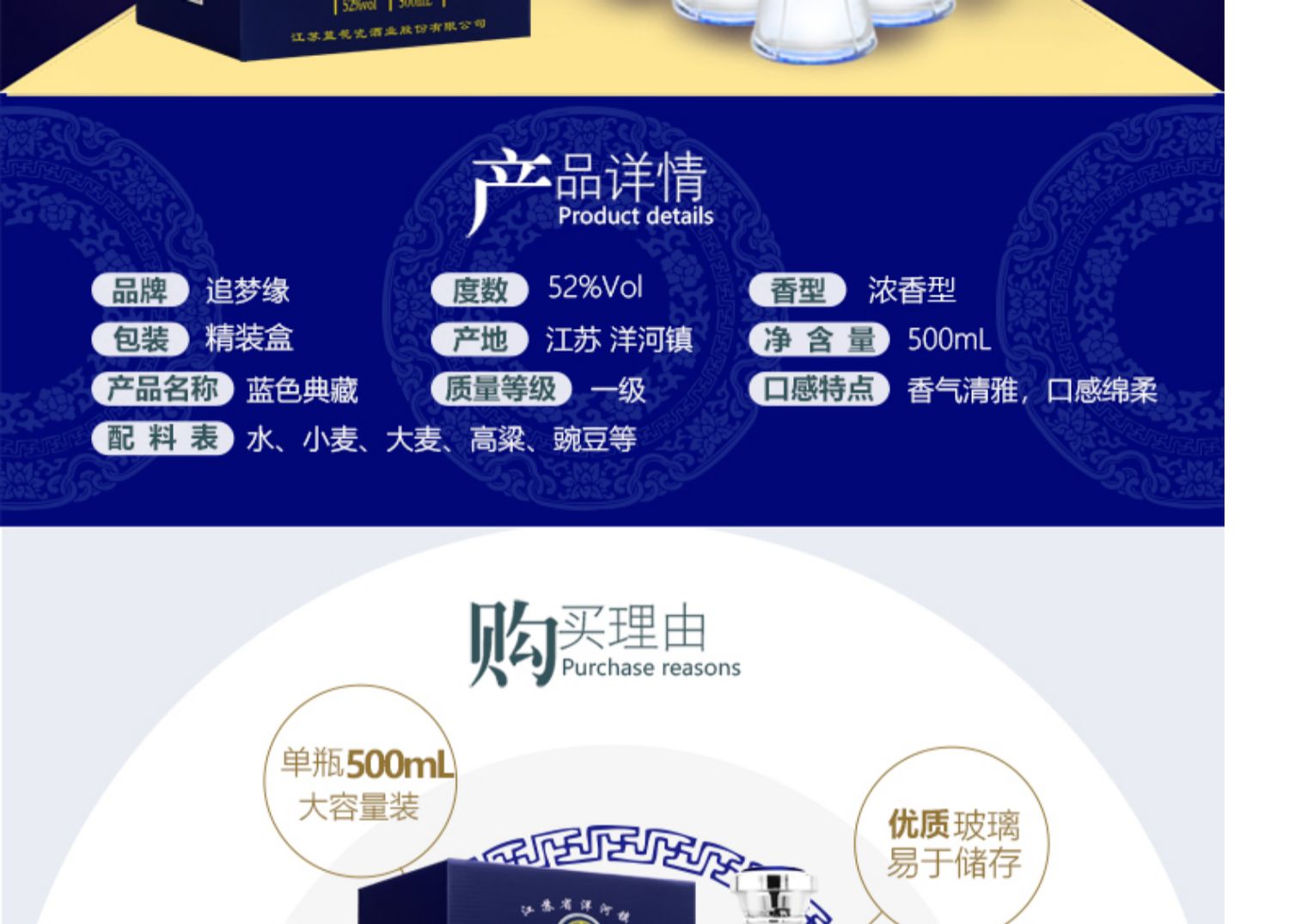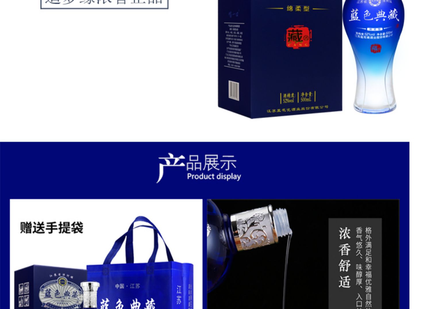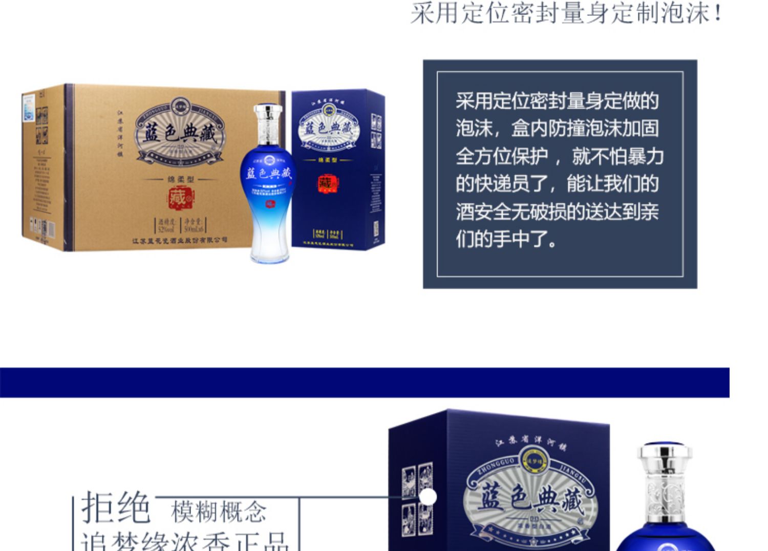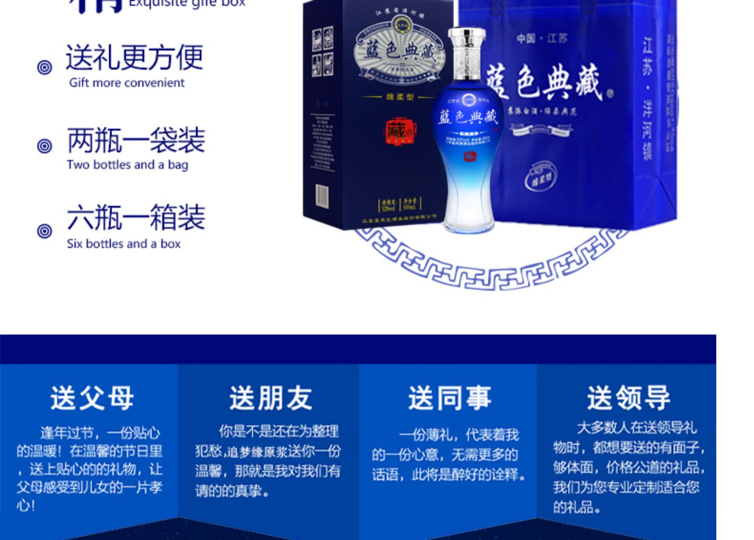 蓝色典藏浓香型白酒,52度500ml*6瓶,超划算,醇香,多粮,高雅,韵味。原生态高粱!