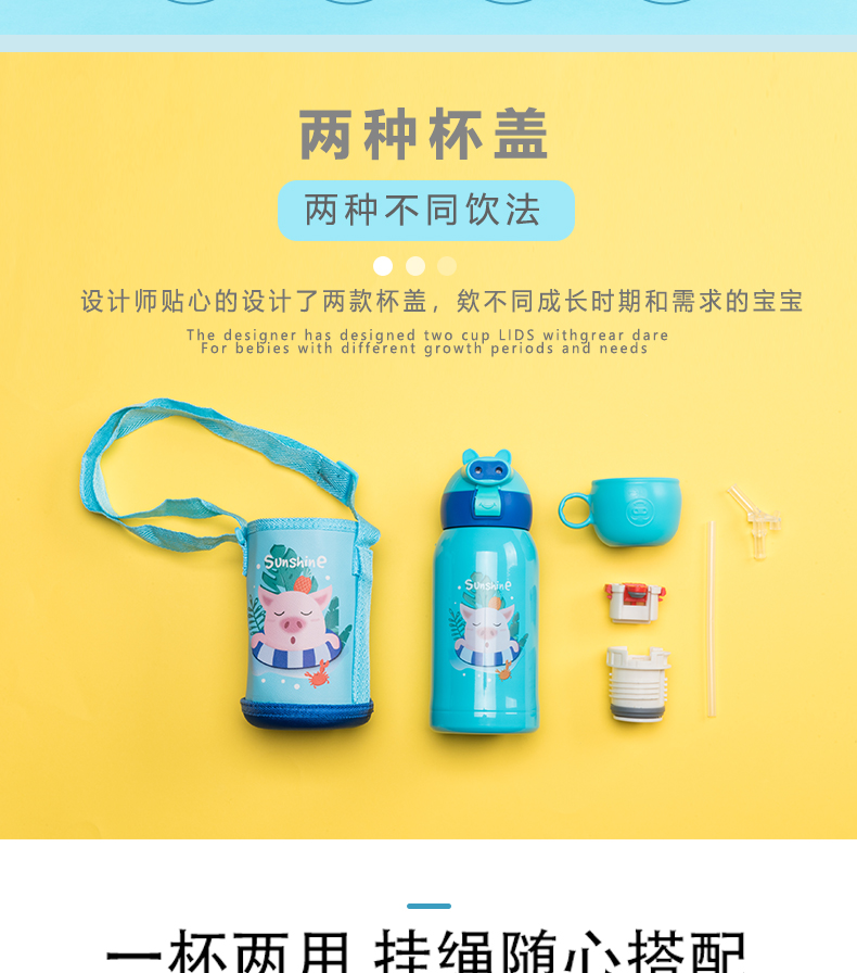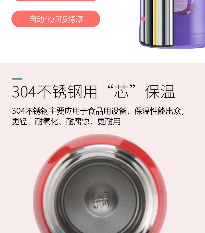 【304不锈钢内胆】6小时持久强效控温,耐氧化,耐腐蚀,更耐用,弹跳式开关,热水开盖不喷溅,一杯两用,挂绳随心搭配,轻量设计让宝宝轻松出行【七天无理由退换】