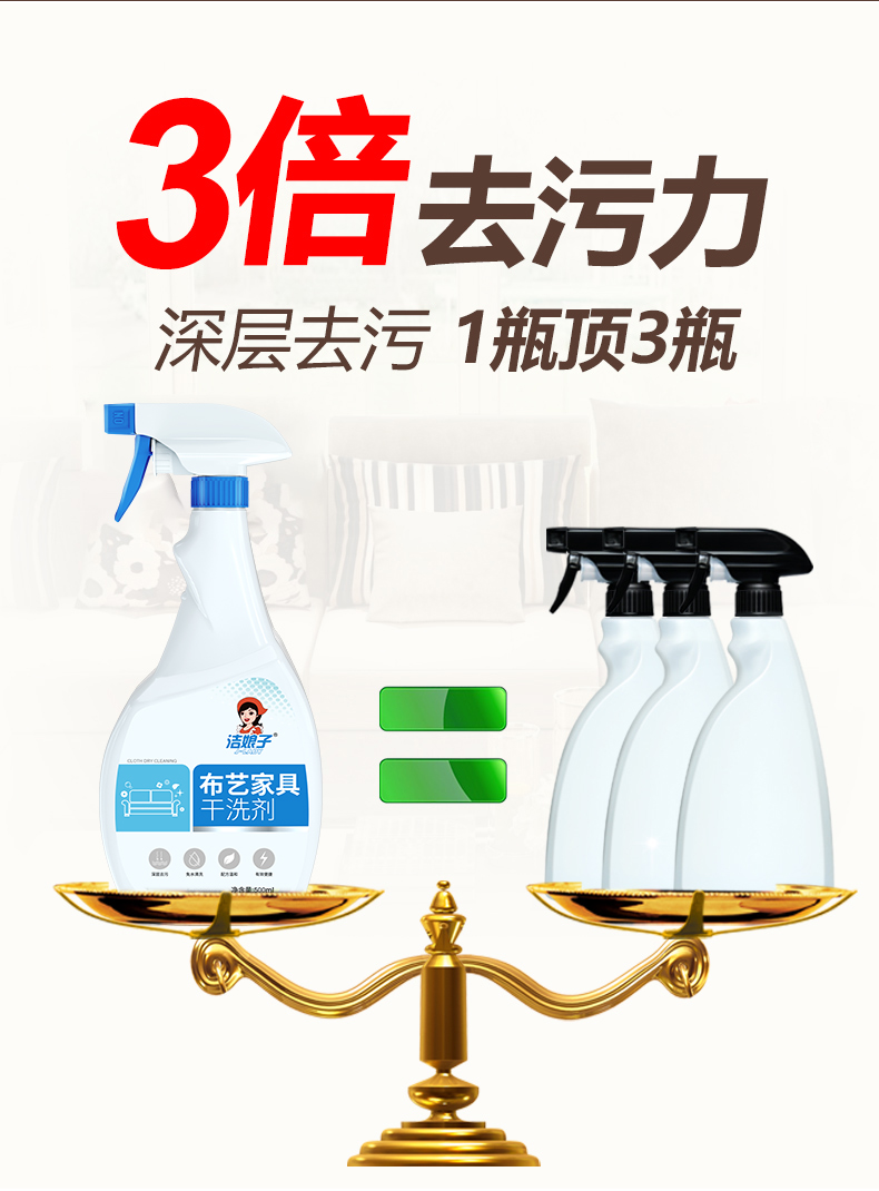 【3大瓶装】送毛巾+海绵,多功能清洁剂清洗神器,布艺家具,羽绒服,地毯等等都可以使用,免水清洗,深层去污,环保配方,沙发脏了怎么办?用它!用它!喷一喷,轻轻一擦,干净如新~