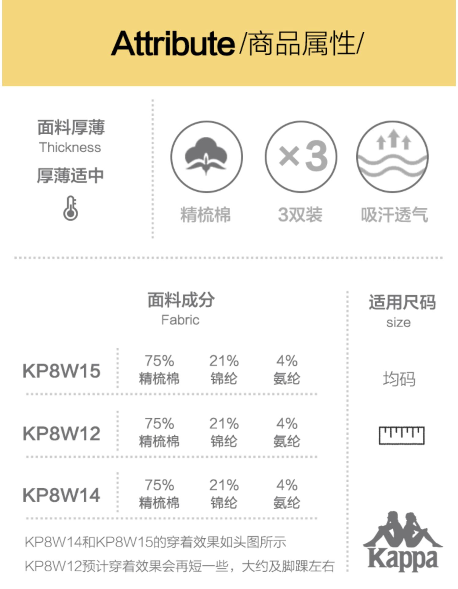 Kappa品牌保障!3双装字母运动休闲棉袜,精梳棉面料,吸汗透气,薄厚适中;贴合无感,后跟弧度设计,贴合脚跟,打造品质舒适穿着体验。【退货运费险】