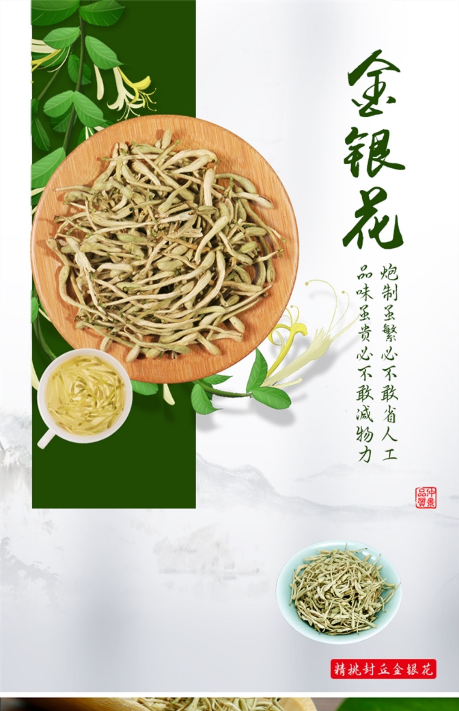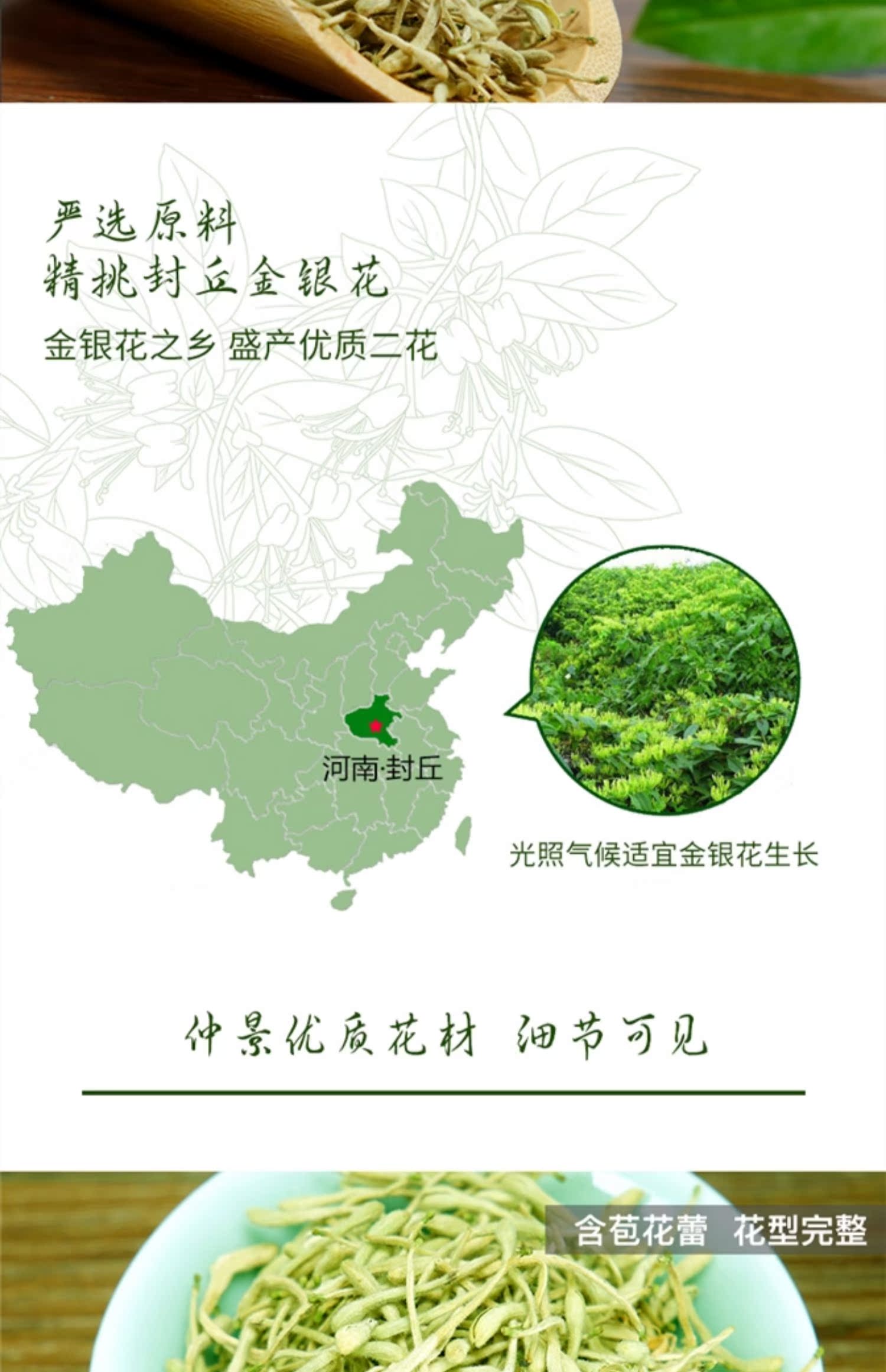 清新爽口,无惧火气,手工挑选,自然晾晒,选用未开的成熟花蕾,成茶条饱满嫩绿,口感清新,醇正滋味,符合中国药典标准,仲景品质,值得信赖。