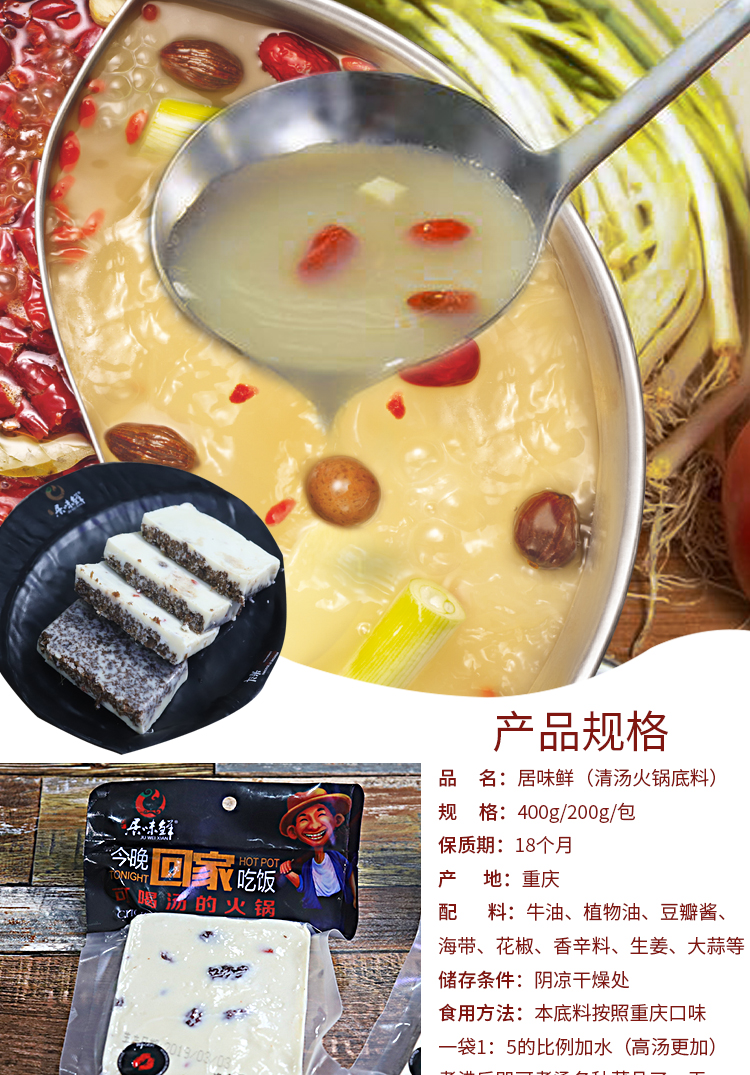 清汤汤料味醇鲜香,营养丰富,鲜美可口,自然鲜香,健康美味,好材料才能出好汤,200g袋火锅底料~!