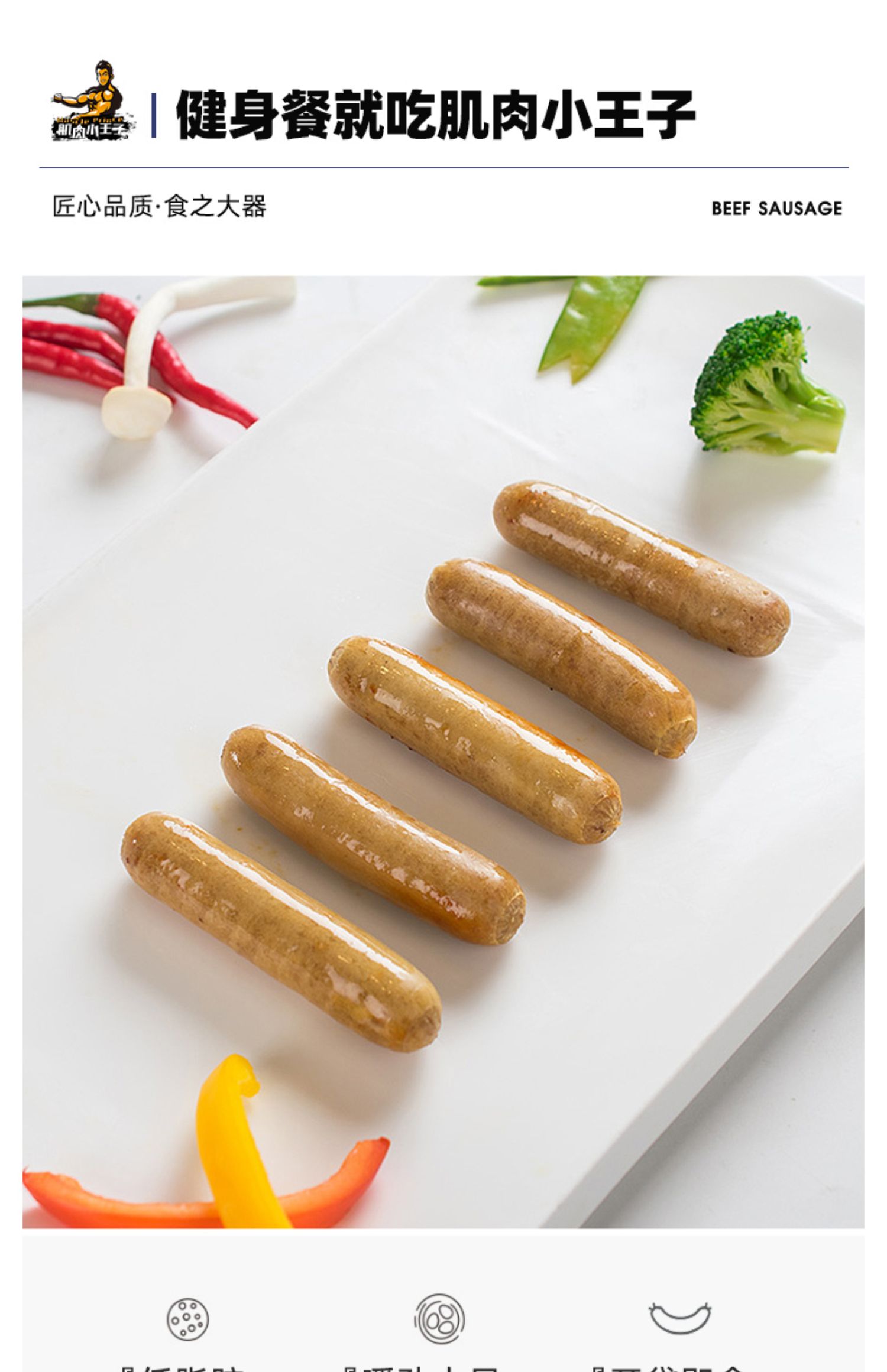 优选上好牛肉肠,所有主料配料层层精选,锁住牛肉肠的鲜嫩,代餐减肥食品,低热量,高饱腹感,营养均衡,无添加油脂,低脂增肌神器,健身达蛋白质补充必选,比蛋白粉健康!