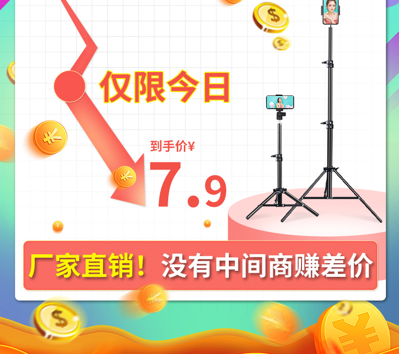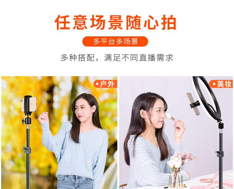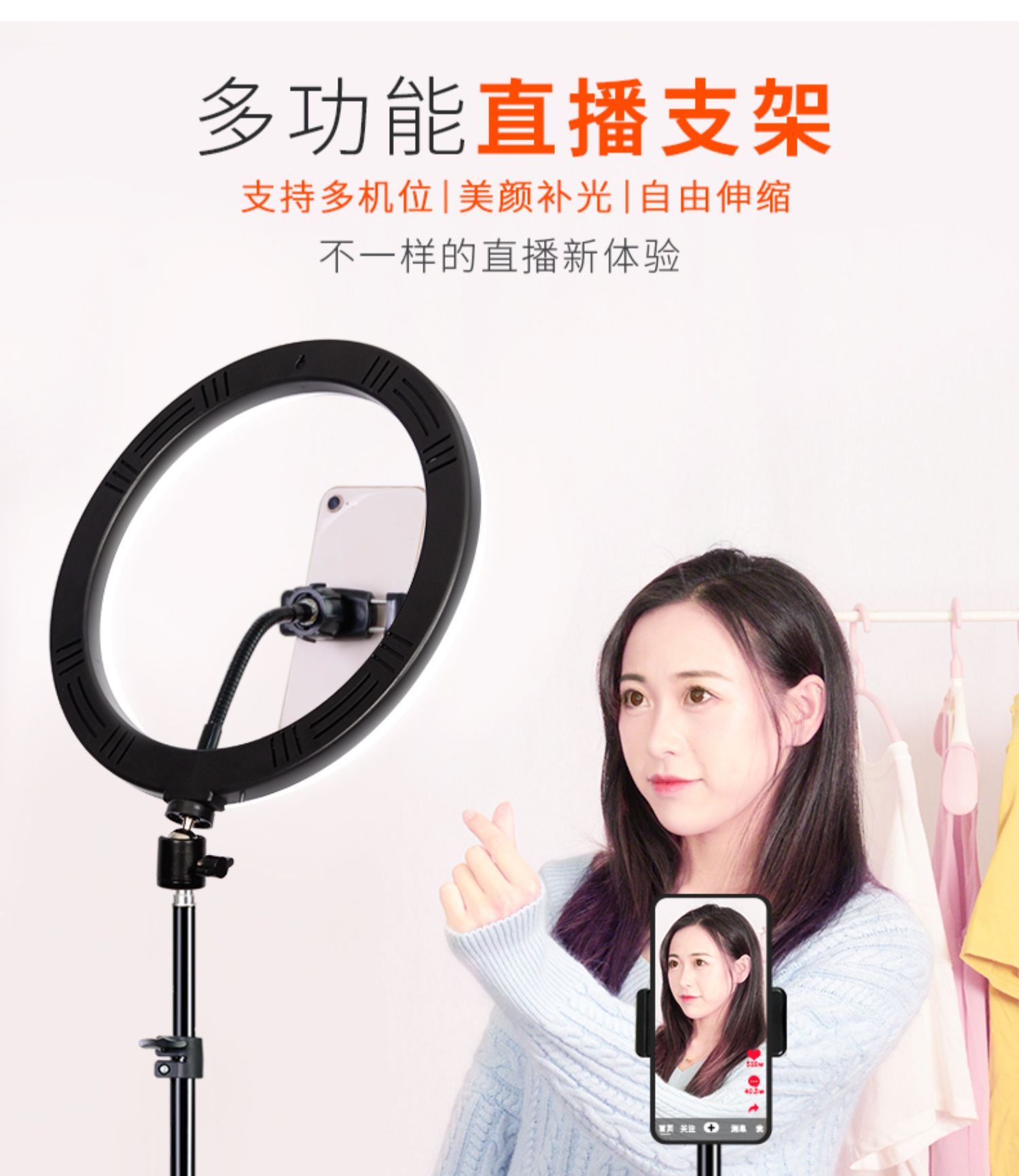 【手机夹+云台+收缩支架】多功能直播支架,支持多机位,3种光效美颜补光,自由伸缩,蓝牙遥控更加便捷,可360°旋转,每个角度都能拍到哦!【赠运费险】
