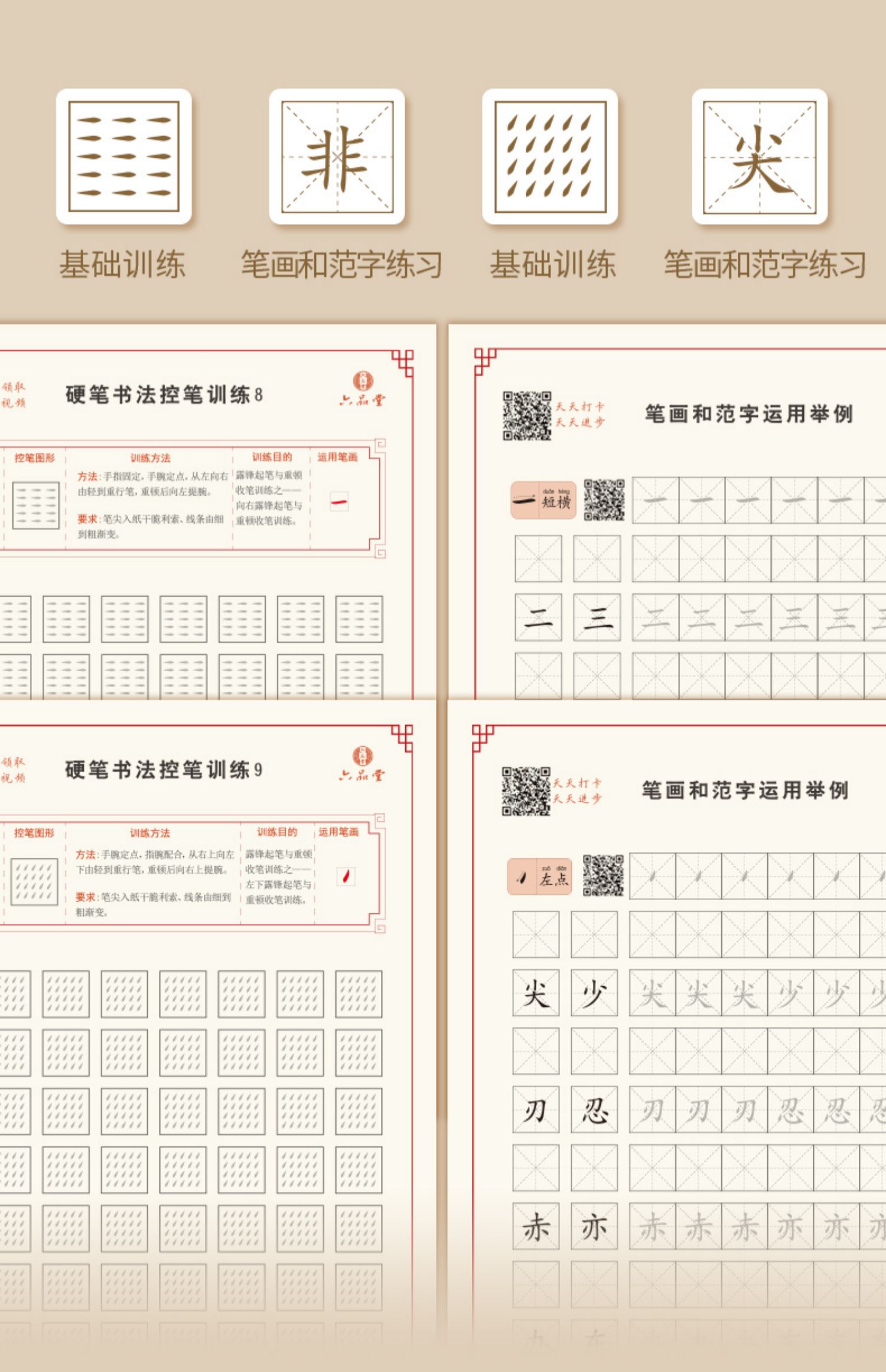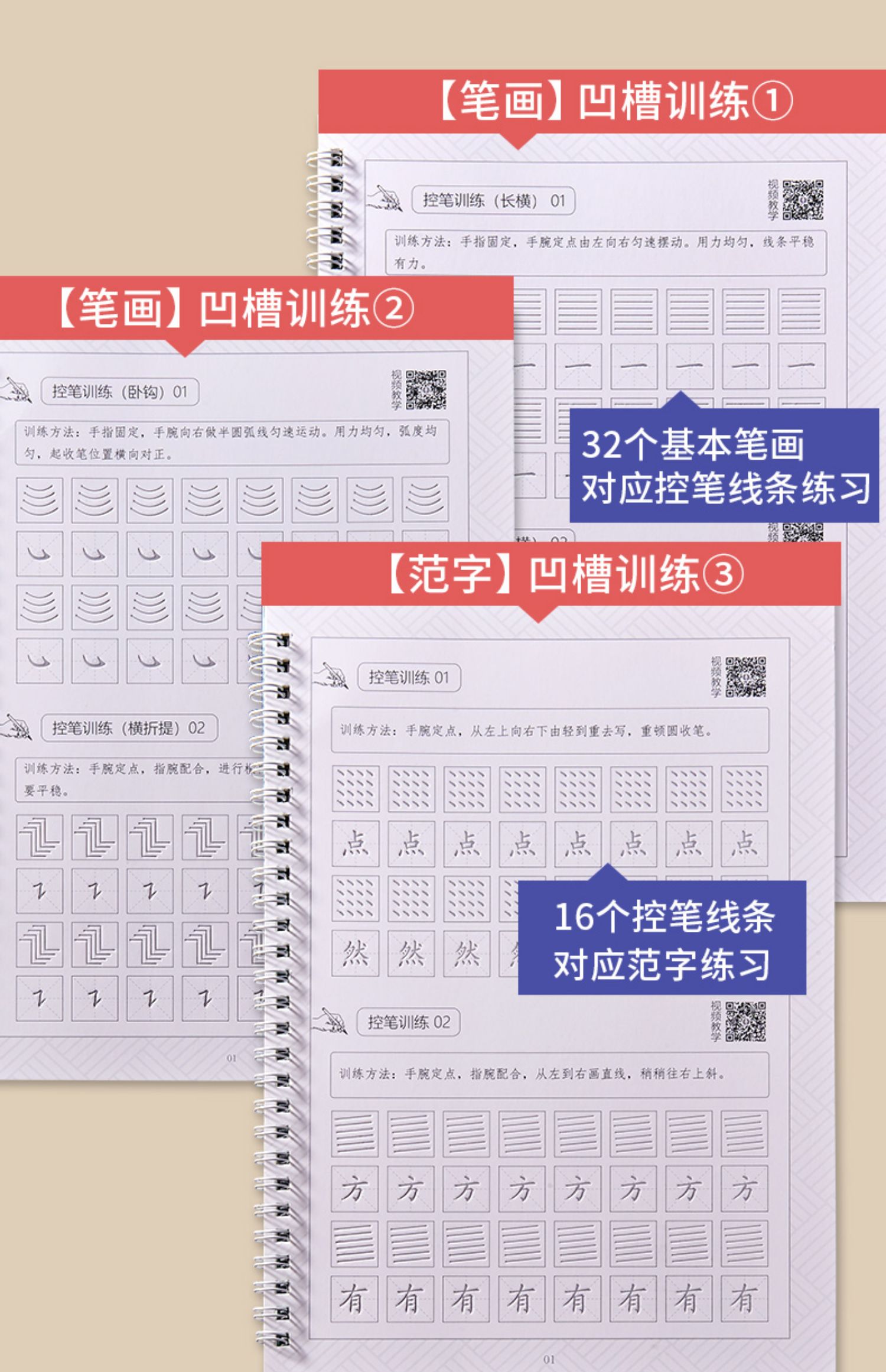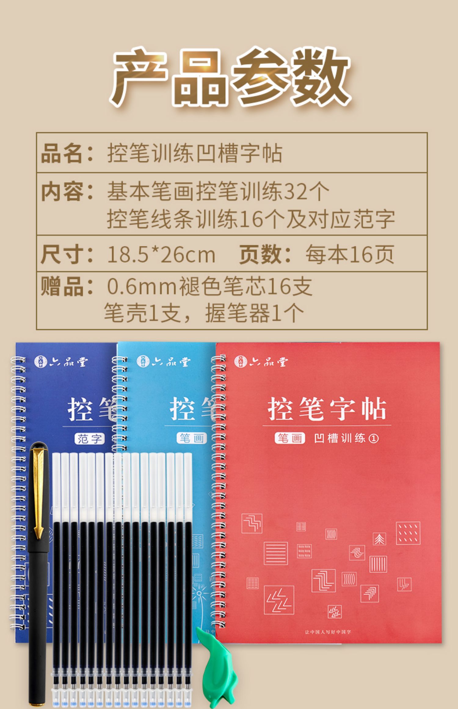 【买就送笔芯8支,笔壳*1握笔器*1钢笔*1墨囊*6】告别孩子写字笔画不对,写得歪歪扭扭!控笔训练字帖组合!轻松临摹,14天打造控笔技法速成!字迹可自动消失,可以反复训练!