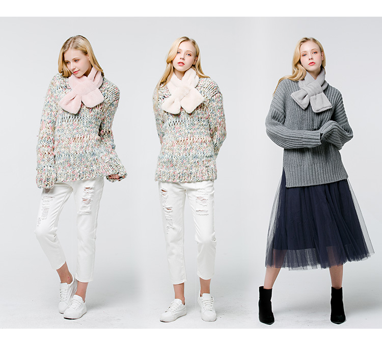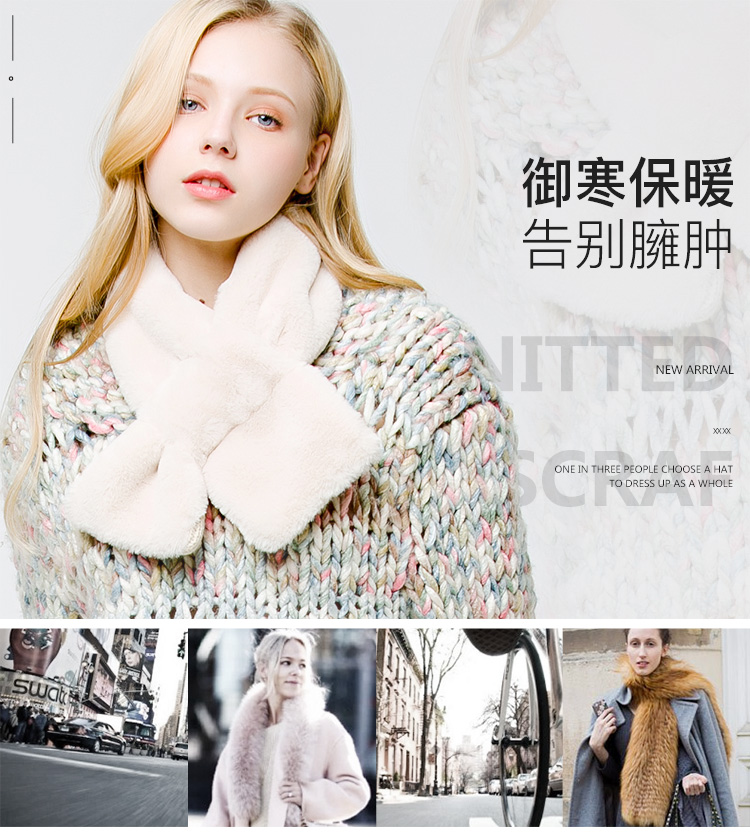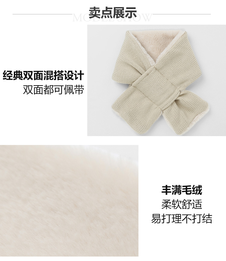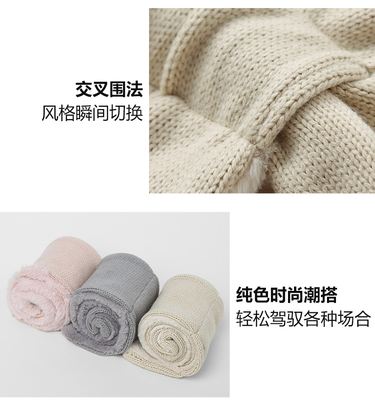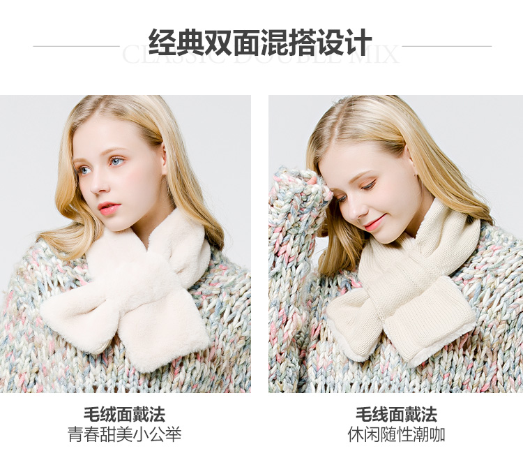 【溢彩】冬季韩版加厚保暖毛线针织围巾,双面仿兔毛毛绒围脖,经典双面混搭设计,三种颜色任你挑选,两种戴法,让你成为百变小仙女~