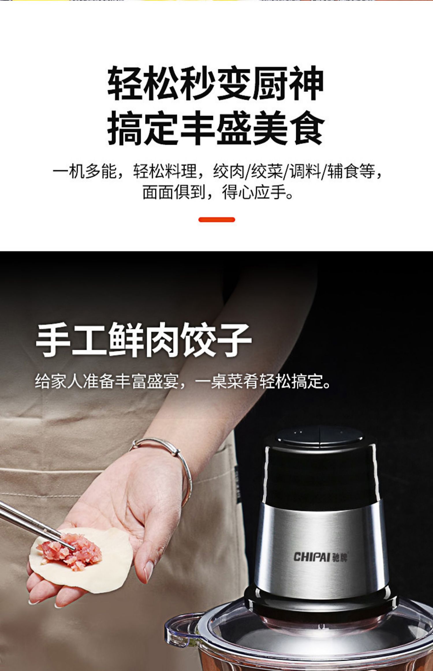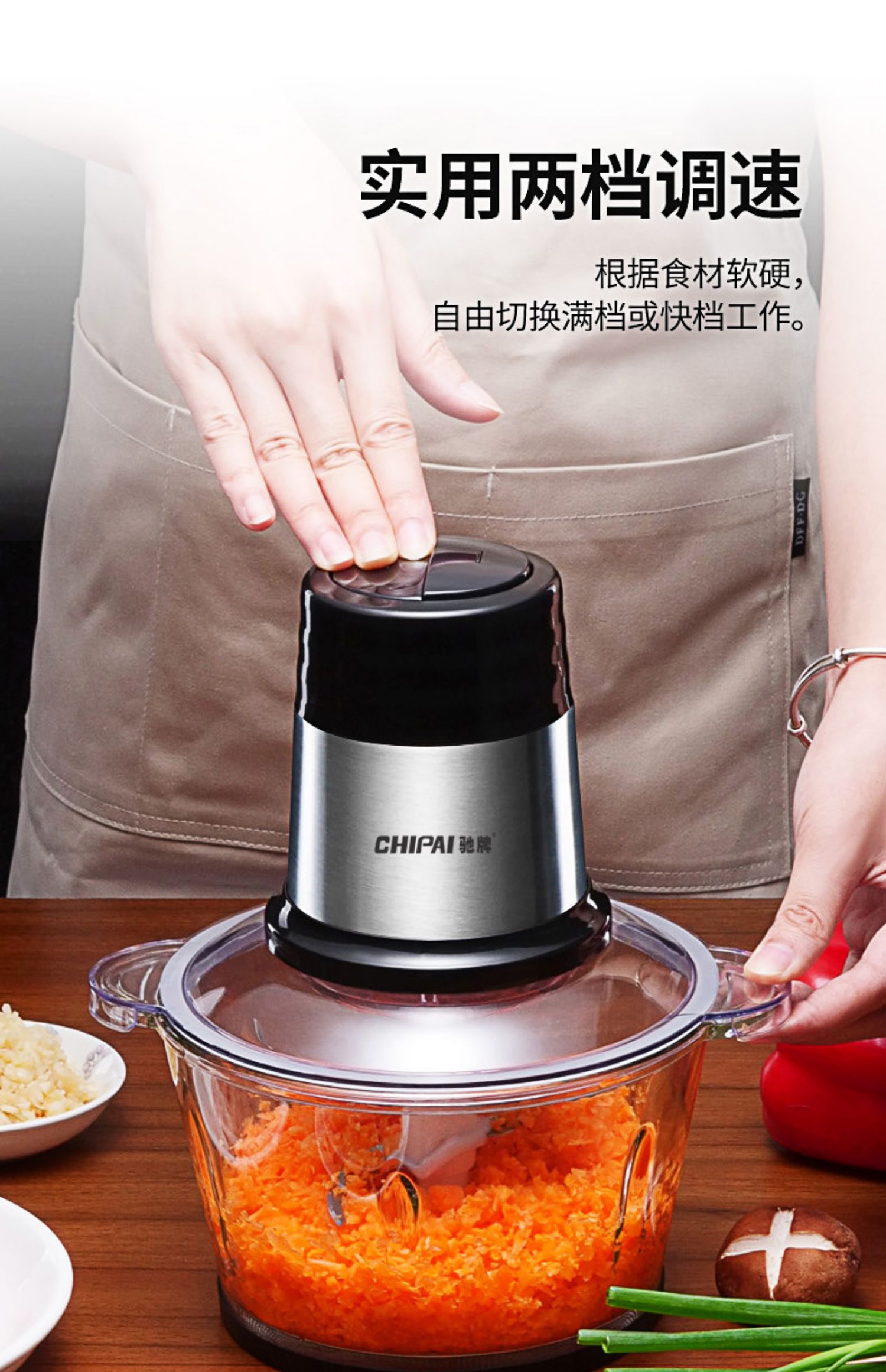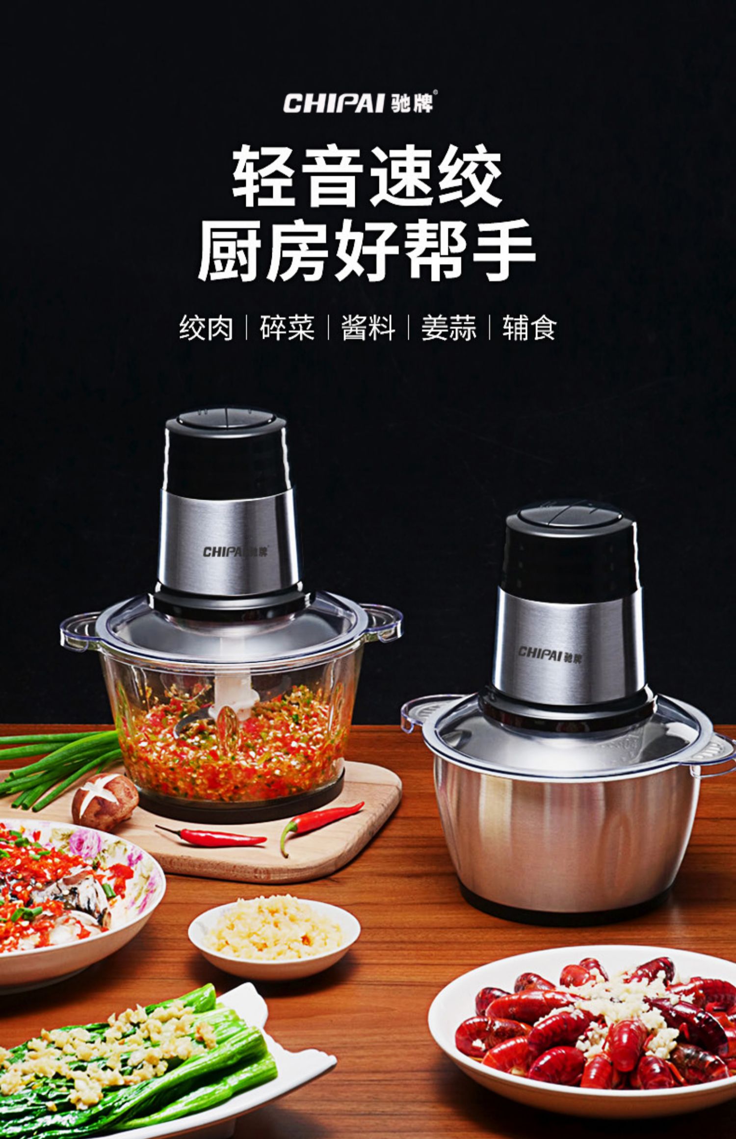【买就送刮刀、护刀套、防滑垫】商用品牌【驰牌】品质保证,食品级不锈钢、大马力机头、8秒绞肉!2斤大容量两档调速软硬通吃,绞肉切蔬婴儿辅食果汁酱料奶昔,一机多能,全新轴心升级不卡肉【赠运费险】