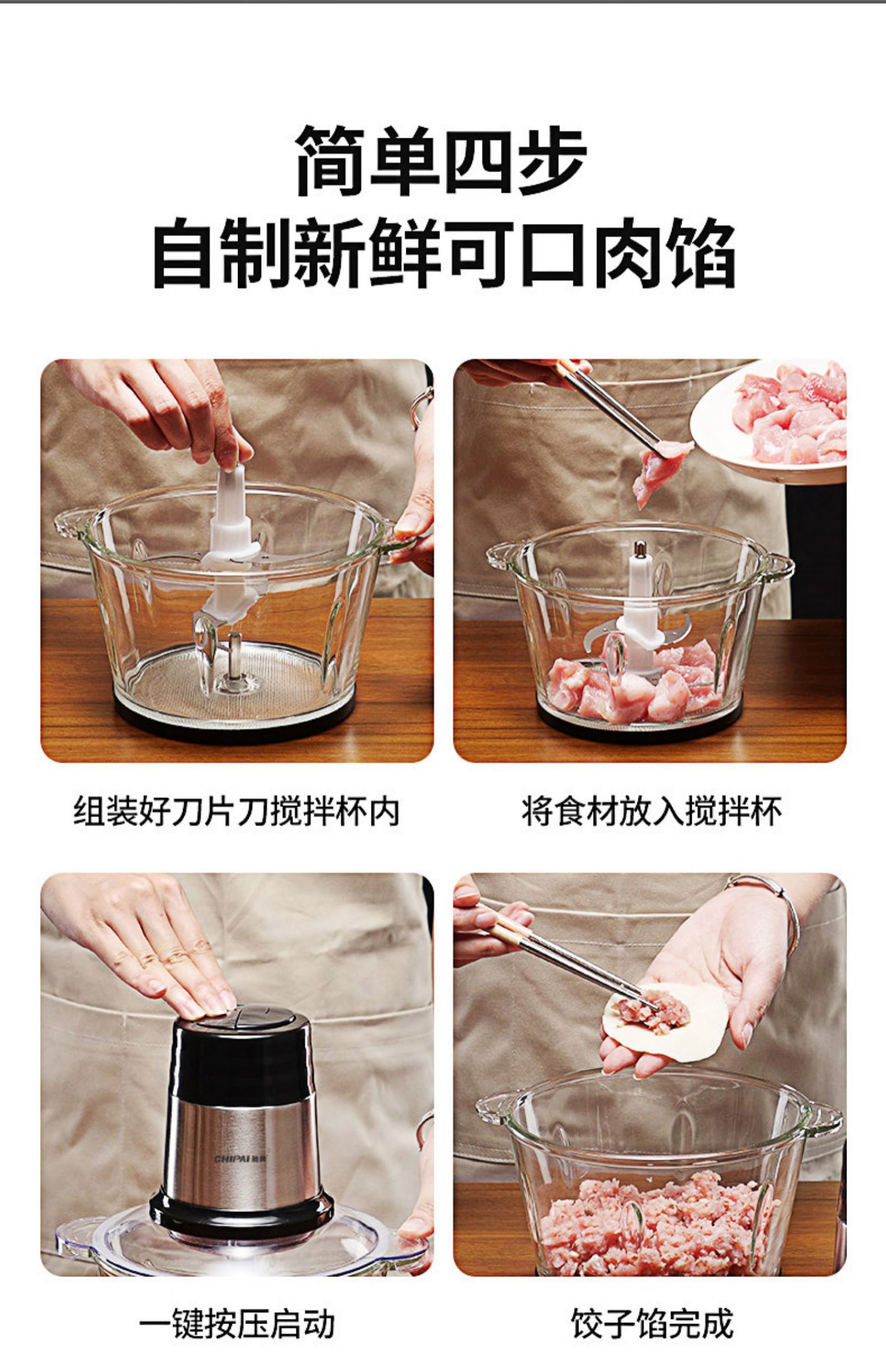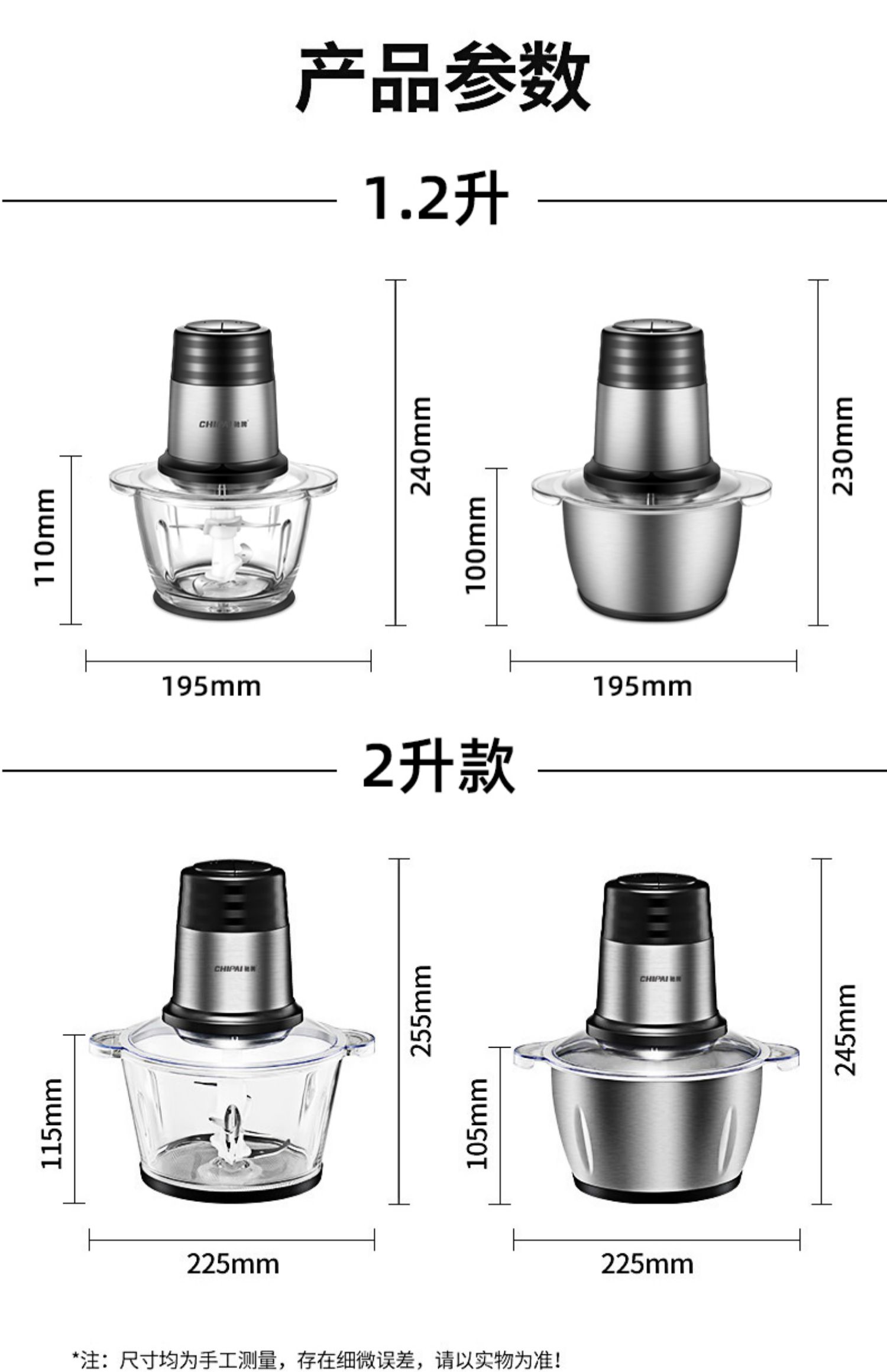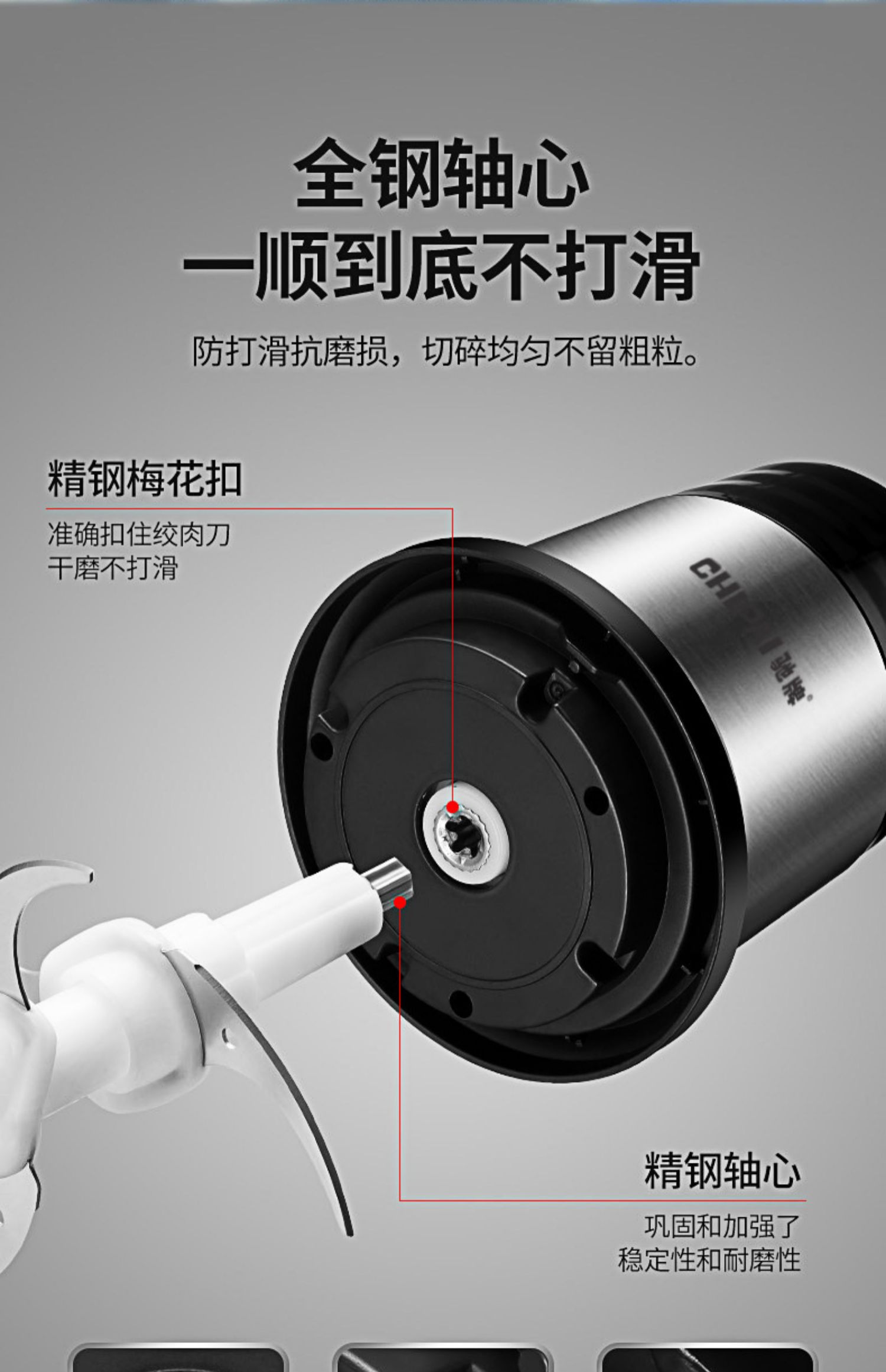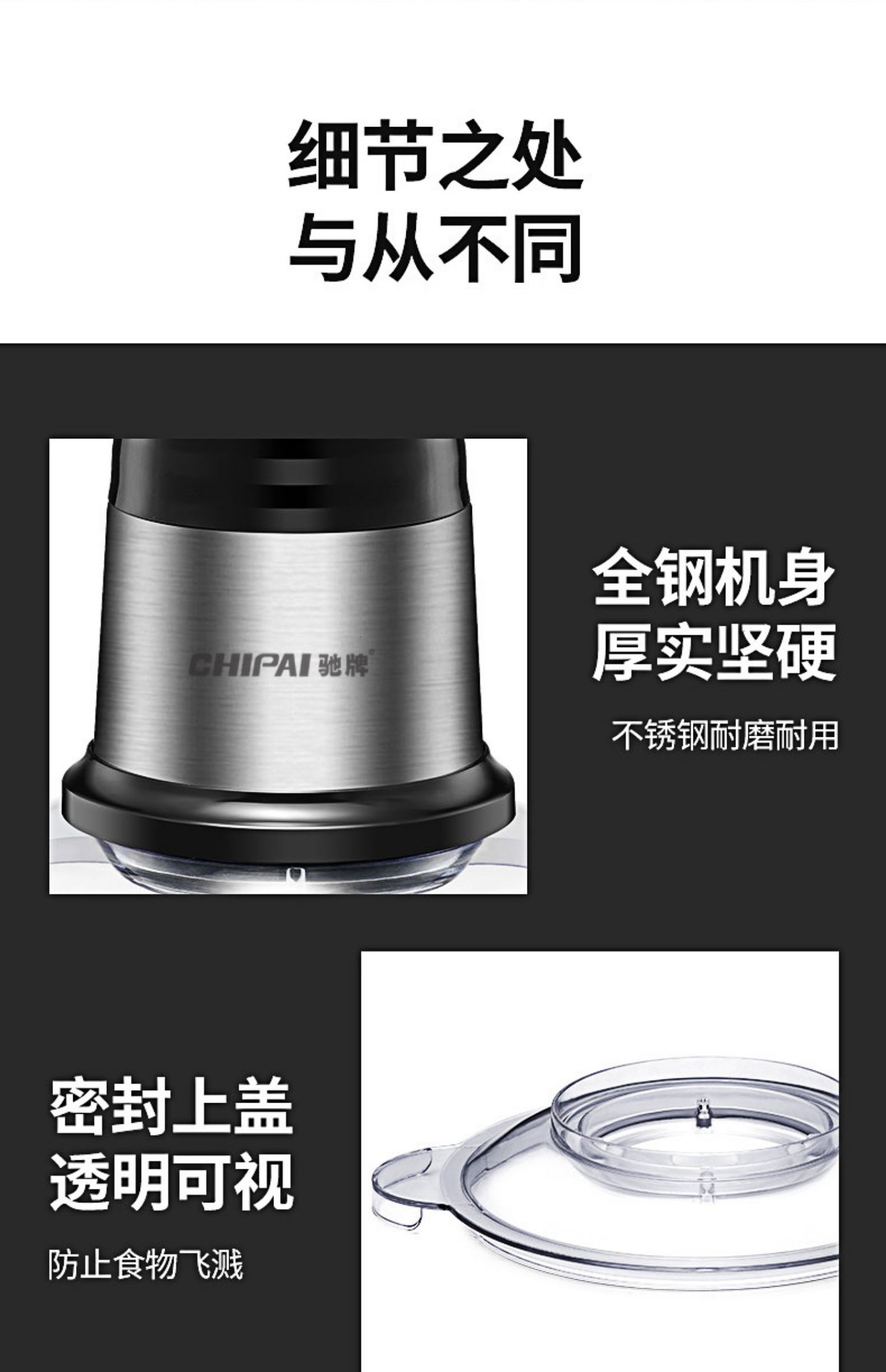 【买就送刮刀、护刀套、防滑垫】商用品牌【驰牌】品质保证,食品级不锈钢、大马力机头、8秒绞肉!2斤大容量两档调速软硬通吃,绞肉切蔬婴儿辅食果汁酱料奶昔,一机多能,全新轴心升级不卡肉【赠运费险】