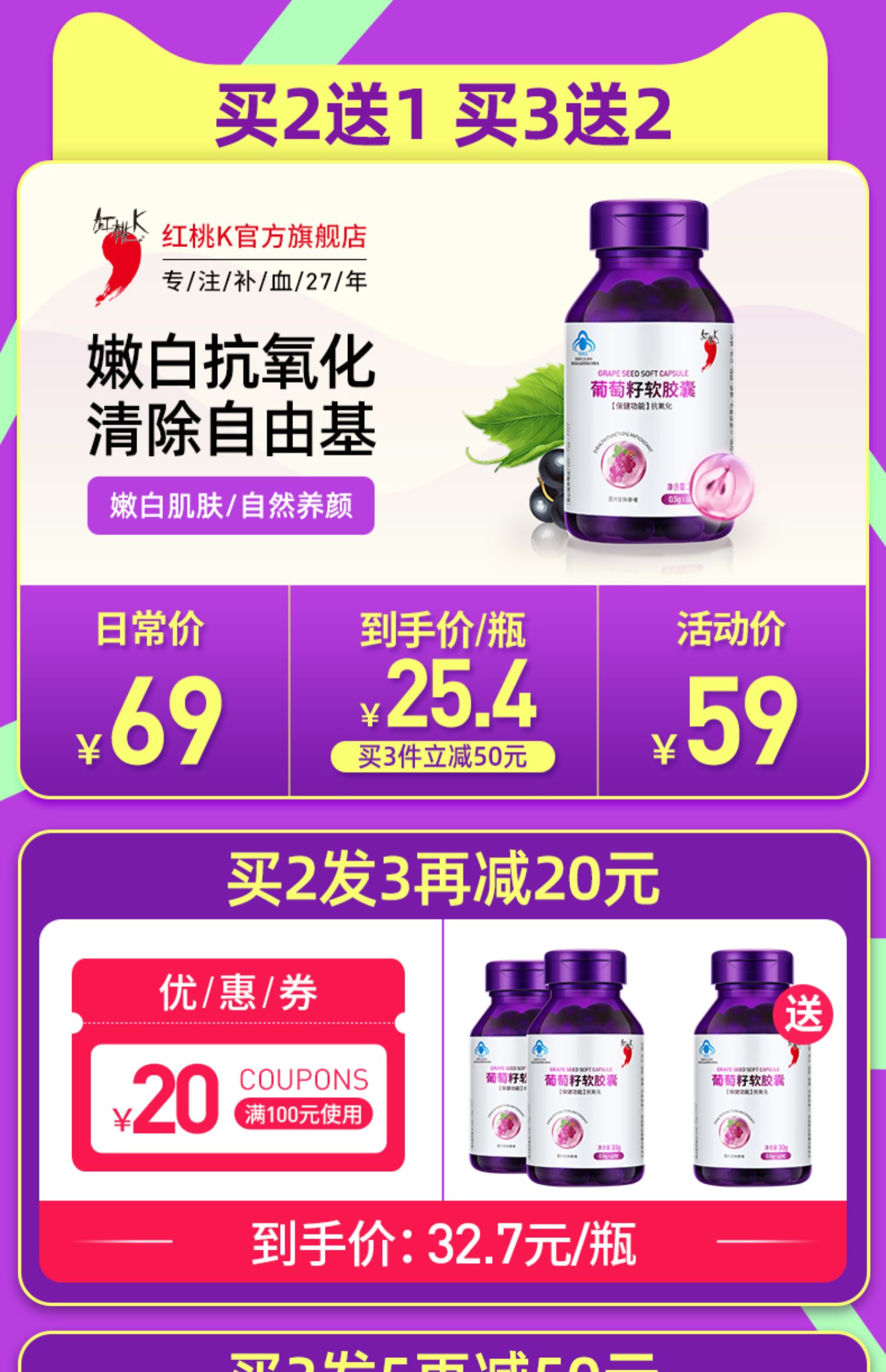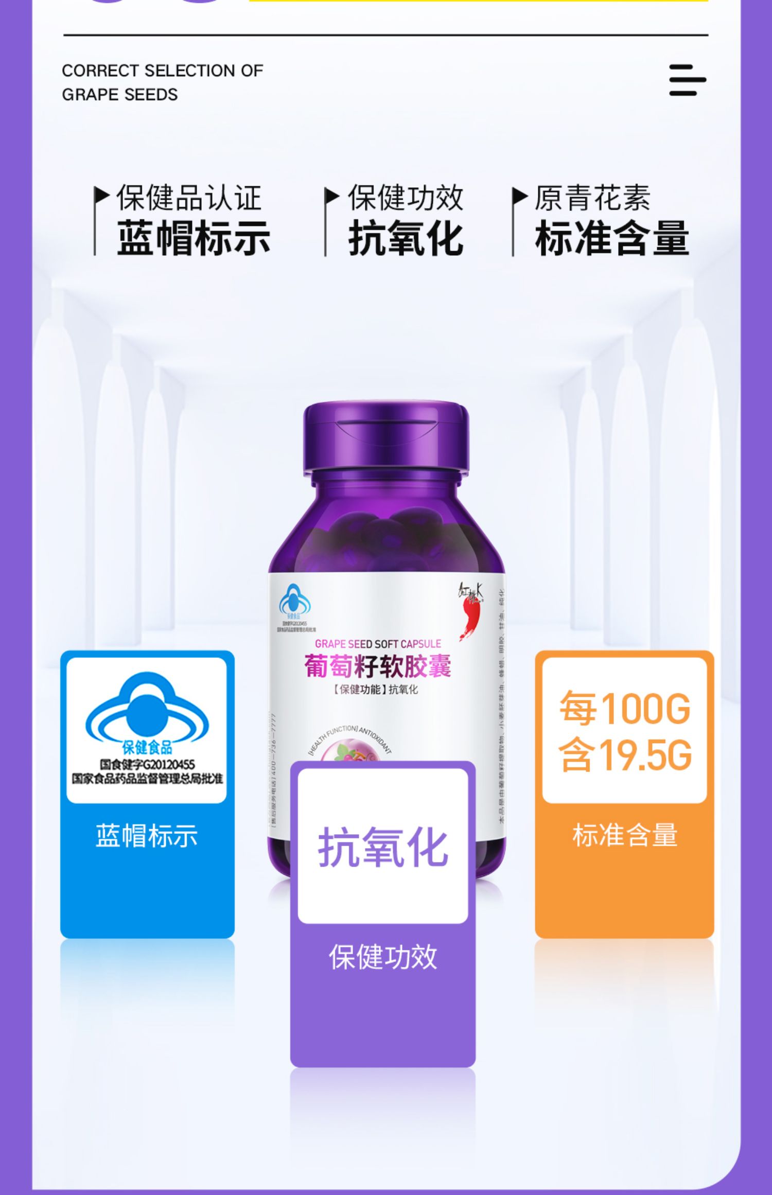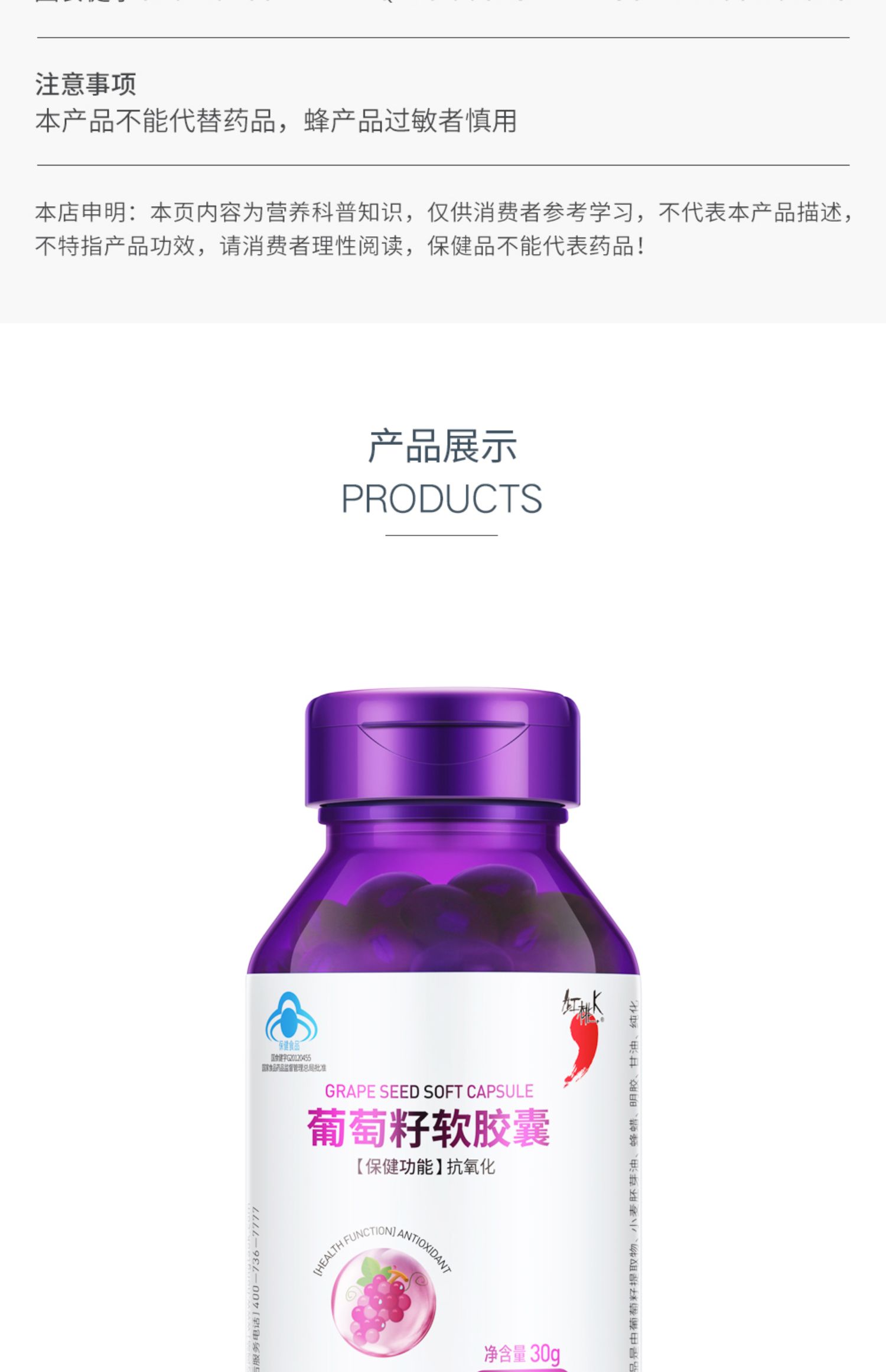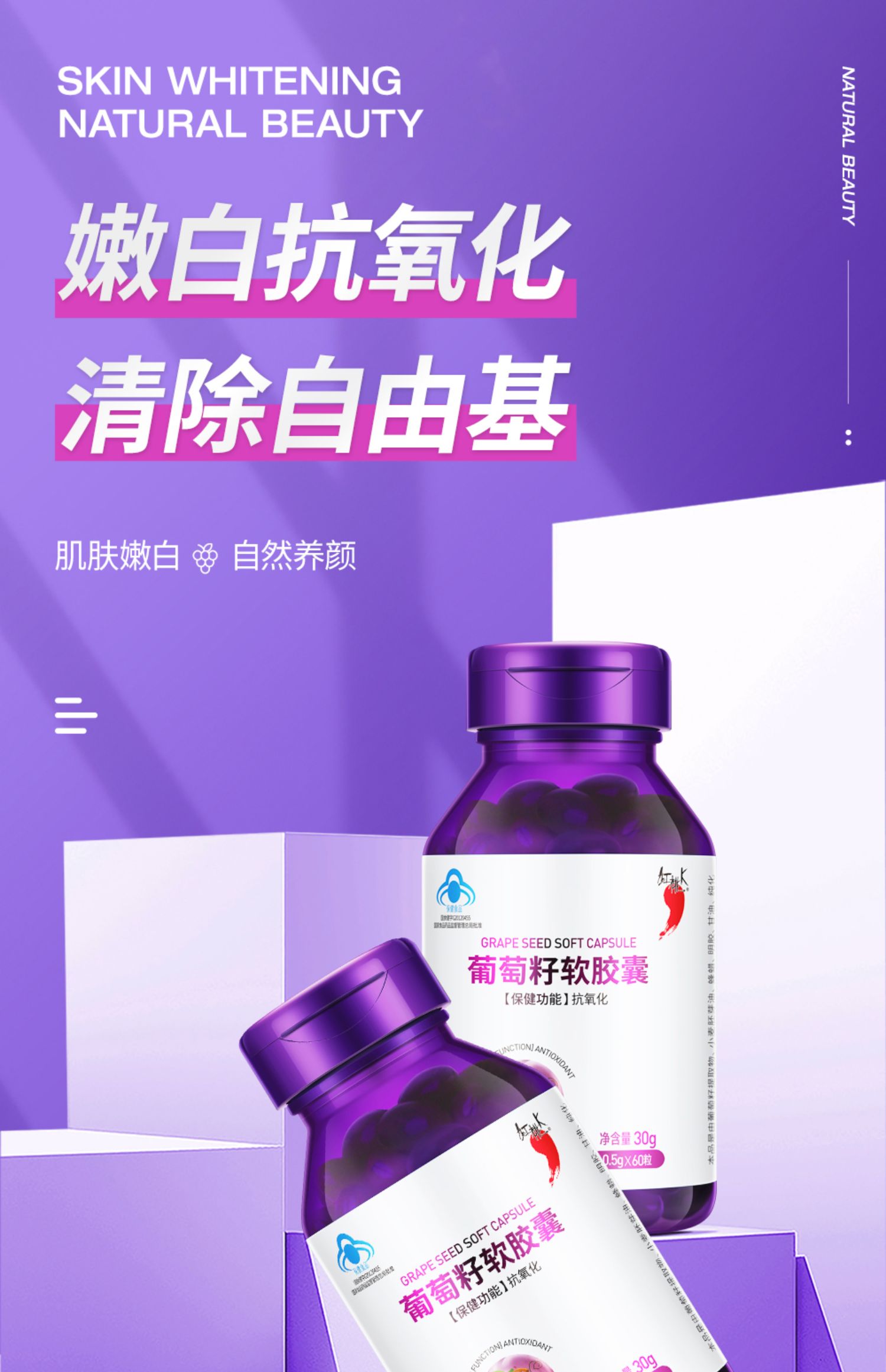 【买2送1!买3送2】【红桃k更放心,多买更优惠】葡萄籽精华,精心配比,美容养颜,提神抗疲劳,双层抗氧化,美白淡斑!一粒就是14瓶葡萄酒美颜效果,美白由内而外!