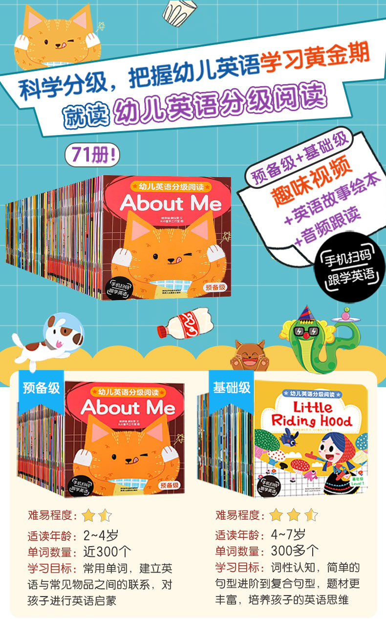 【乐乐趣旗舰店】71册幼儿英语分级阅读基础级,71册科学分级,手机扫码跟学,引导孩子多维度看待问题,幼教英语专家编写,内容有保障。【赠运费险】