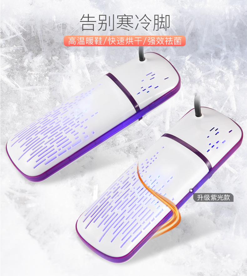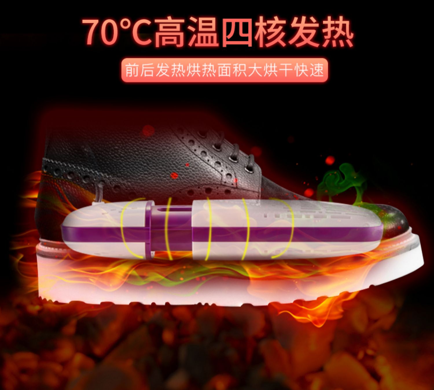 【1对装,双核快速烘干,杀菌除臭四季可用】直插电流15秒快速升温,节能省电,采用耐高温材料,安全可靠,烘鞋循环加热无异味,轻巧方便携带,可烘袜子各类型鞋子~
