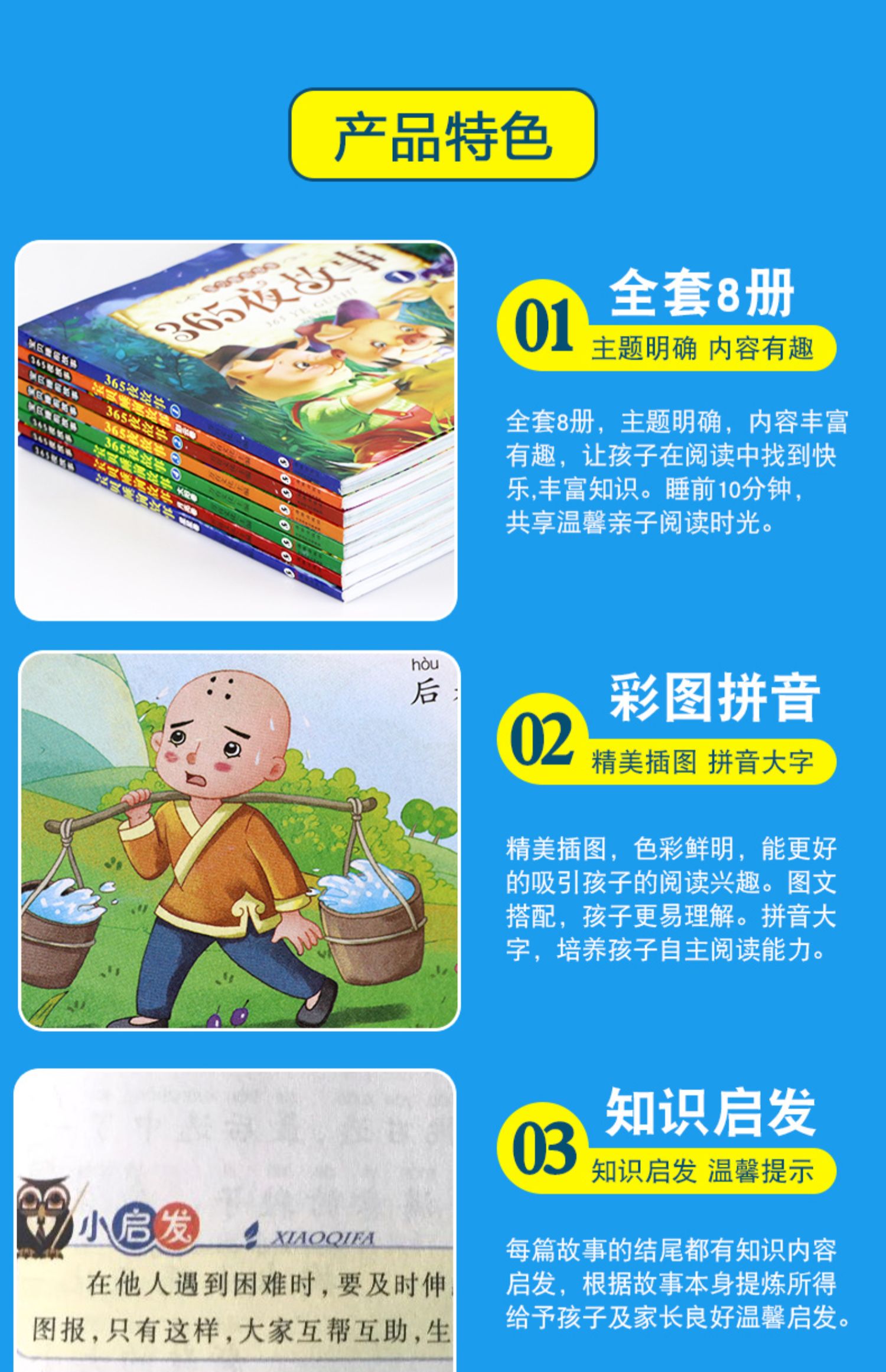 彩色注音,精美插图,全套8册著名童话故事书籍,365夜晚安睡前故事早教书,宝宝睡前故事书籍,陪伴孩子快乐成长,每个故事蕴含的人生哲理,好书精选,宝妈速入!