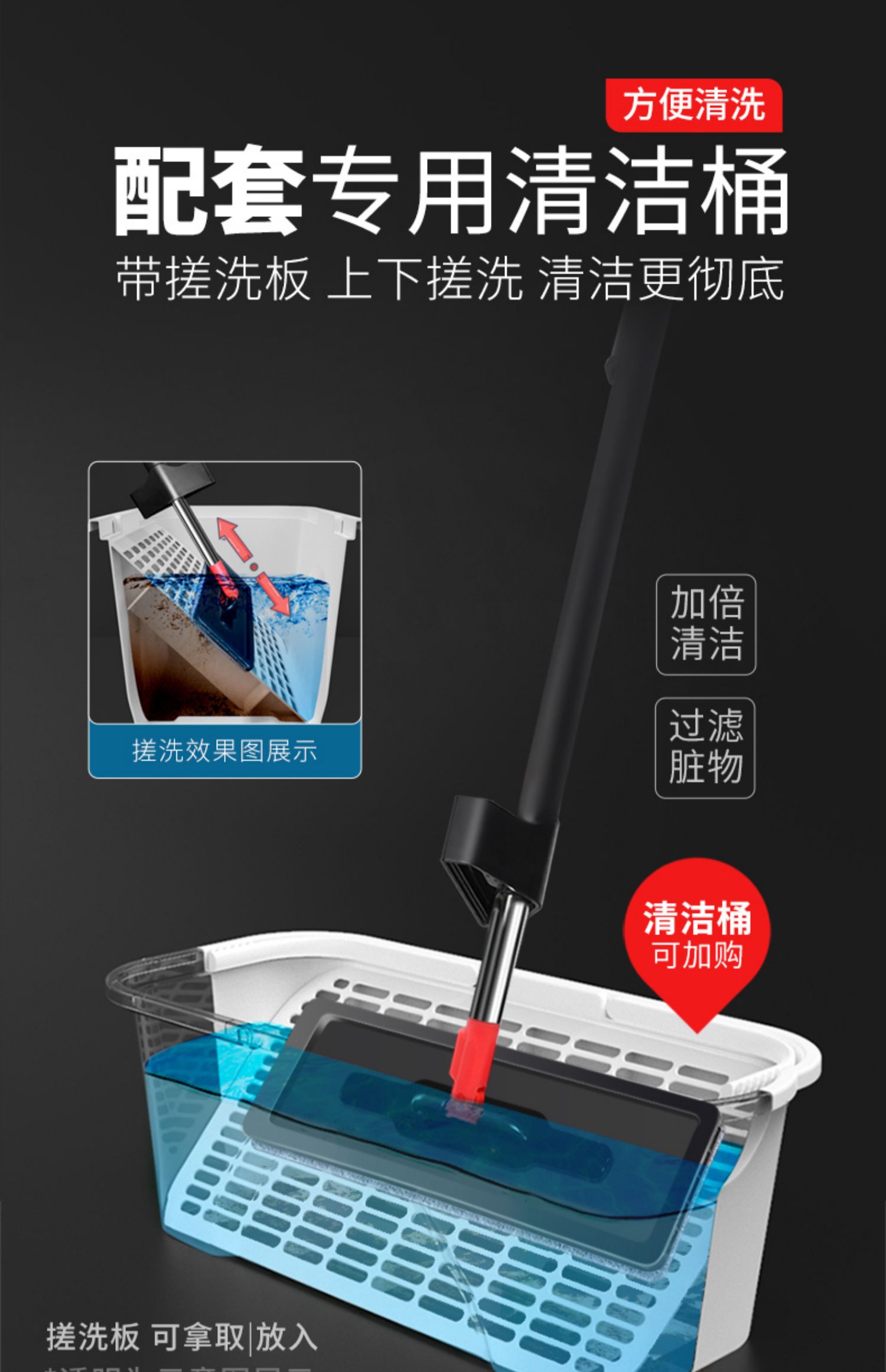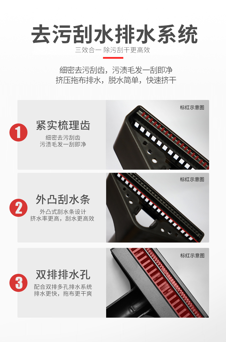 新升级洗脱一体,水渍不外溅拖地不掉毛,360°旋转清洁,干湿两用,各种板面均适用,双清洗口,可移动刮口,挤水去污更轻松!【破损包退】
