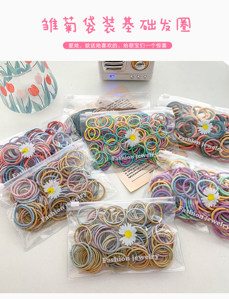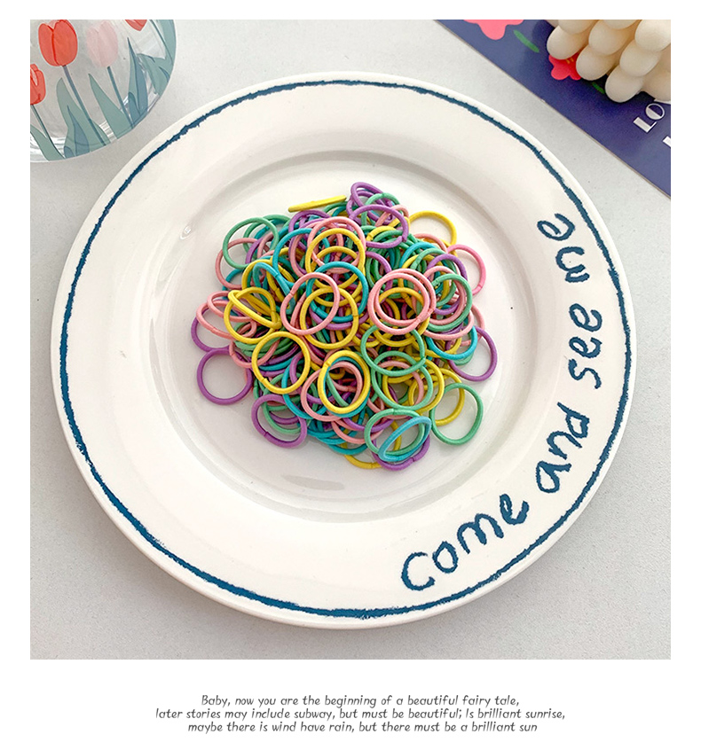 儿童可爱橡皮筋,弹性好,数量多,怎么用都可以,天气炎热扎头发必须的,你要的我都有,大人小孩都可以扎。