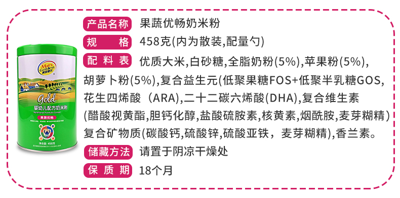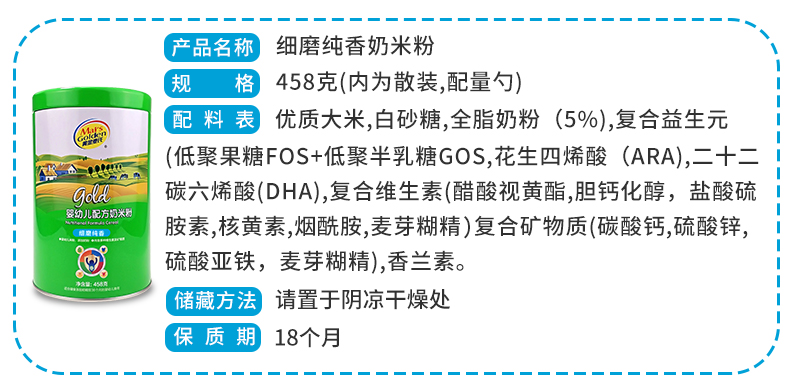 采用优质大米制作,添加全脂奶粉,更健康!营养对比同类高,片状状米粉,香糯容易冲泡,日期新鲜,4个月以上宝宝可以添加辅食【赠运费险】