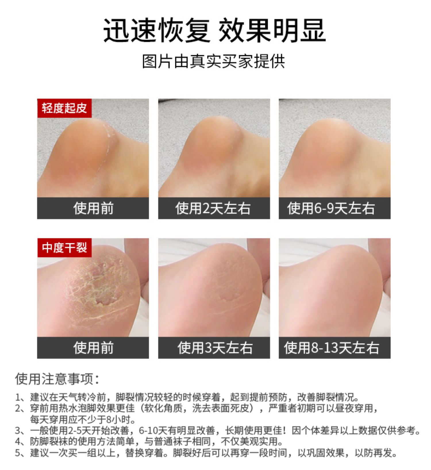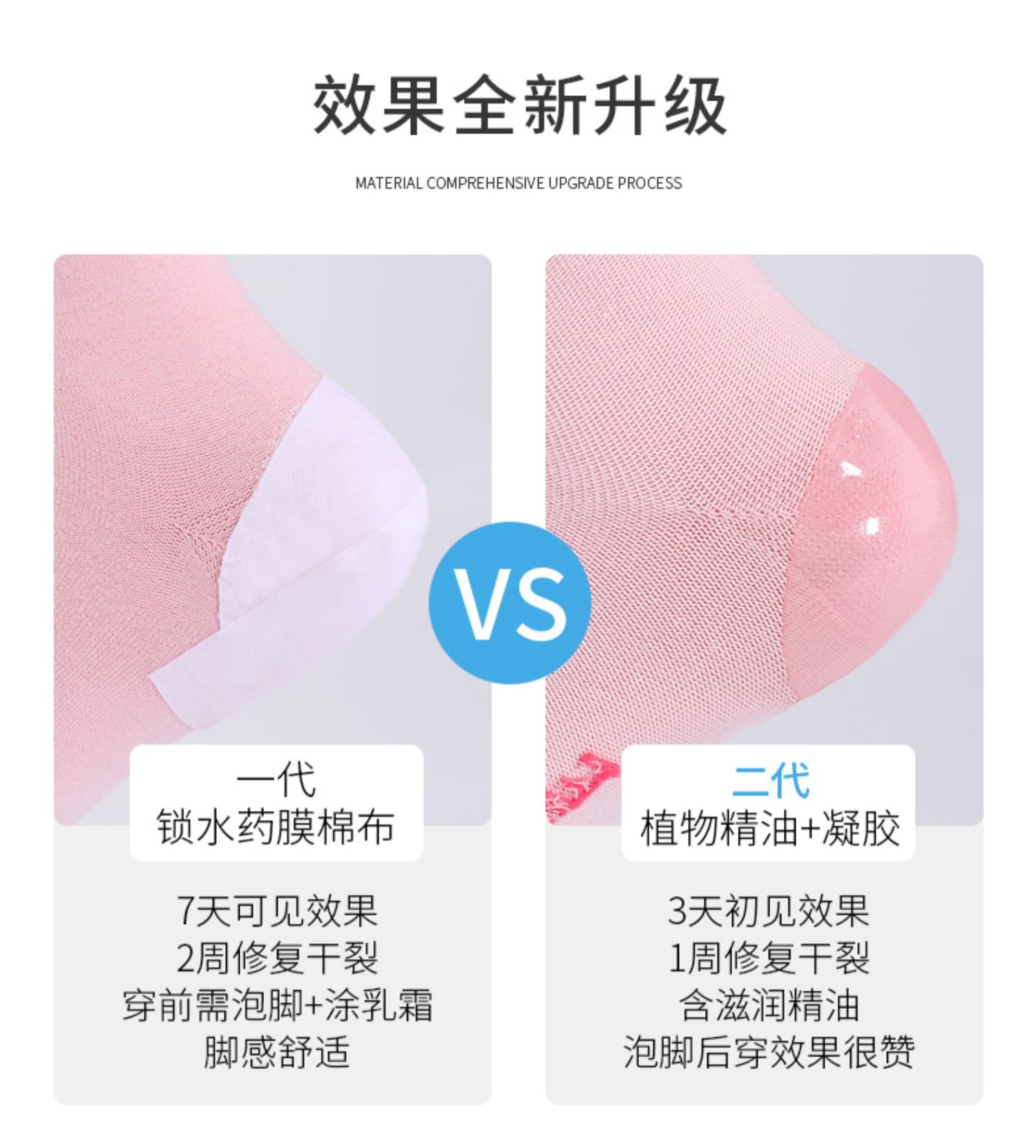 防干裂足裂脚裂精油凝胶,滋润保湿,舒适透气,去死皮去角质,抗老茧,缓解脚部干裂带来的毛糙疼痛及不适,使用3-5天就可以看到效果,袜子反复清洗效果不变!