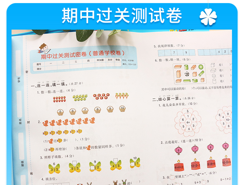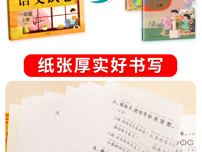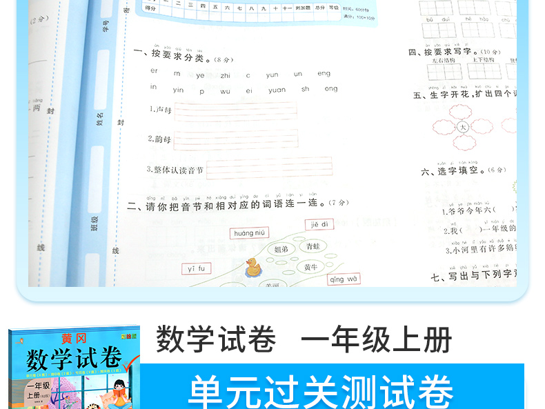 【2本】【全套彩色试卷】2019新版人教版,小学一年级上册单元测试卷,黄冈数学思维训练,名师编写,一本搞定,巩固知识点,正版认证。【赠运费险】