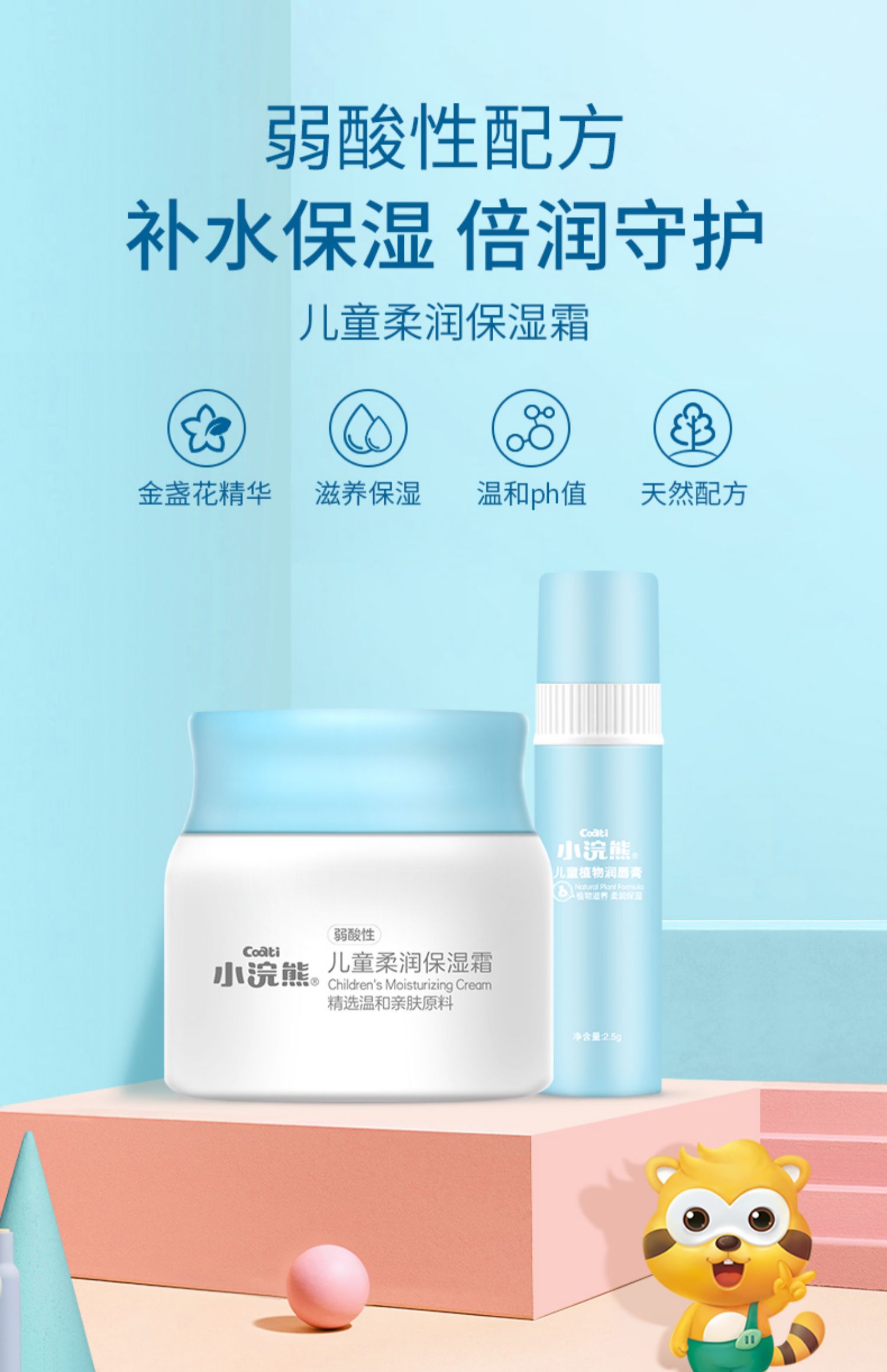 小浣熊滋润儿童面霜,专为儿童研制!添加温和亲肤的天然植物精华,日常润肤,质地细腻,贴心呵护宝宝娇嫩肌肤。帮助调节肌肤干燥缺水等问题,用后肌肤光滑透亮~