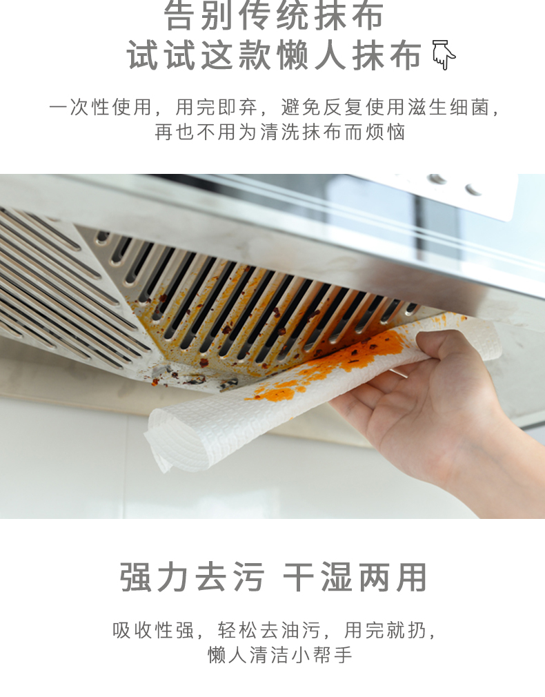 懒人抹布,告别油腻抹布!吸水不易粘油,一次性使用,避免滋生细菌,强力去污,干湿两用,坚韧厚实不易破,点断设计,方便快捷,厨房必备佳品!!