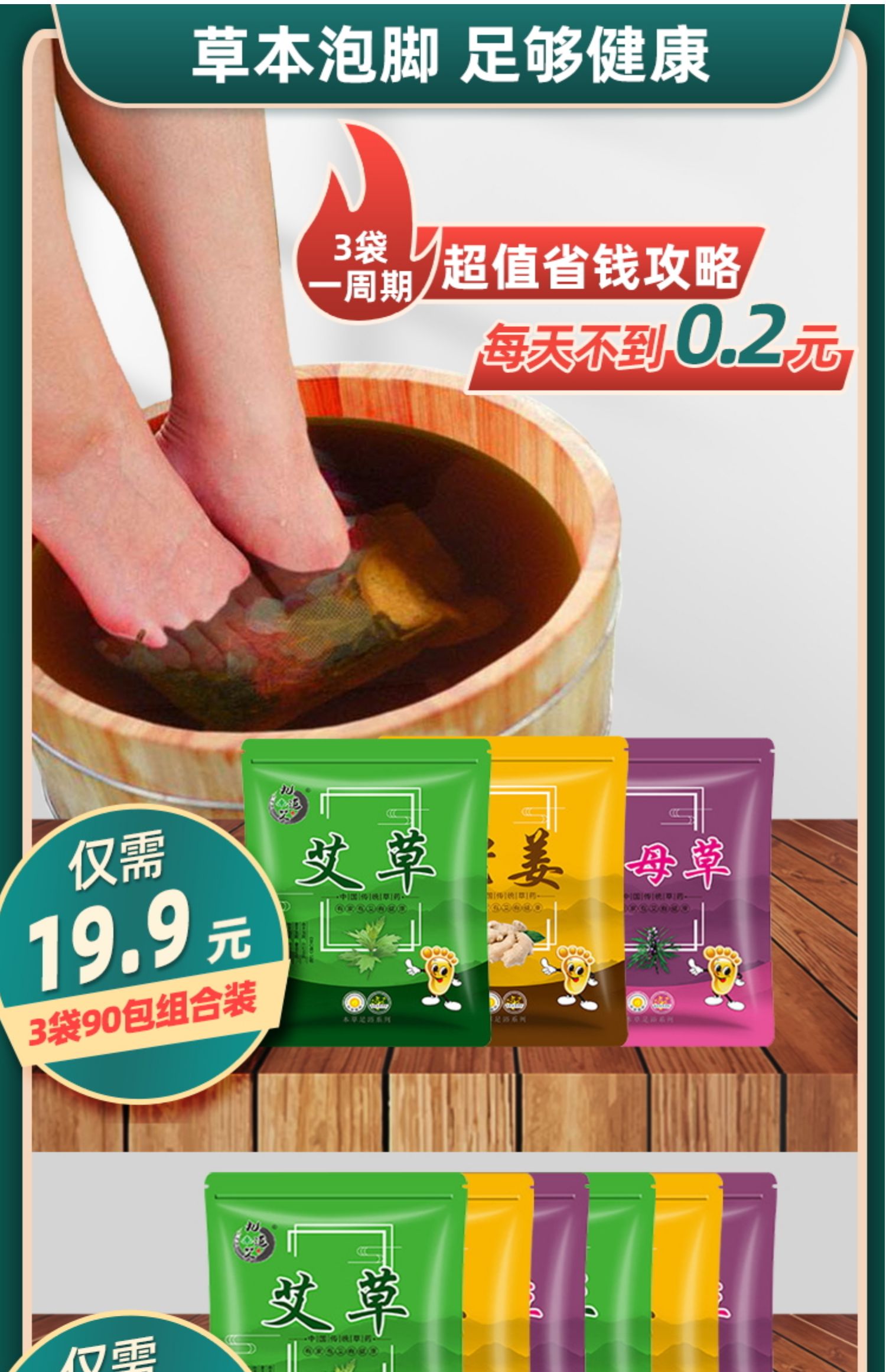 泡脚就要选好的!艾草老姜益母草泡脚粉!三味足汤,自然养生,看的见的真材实料!有祛湿驱寒、养颜助睡眠的功效!每天泡一泡,赶走寒冷湿气,增强免疫力!