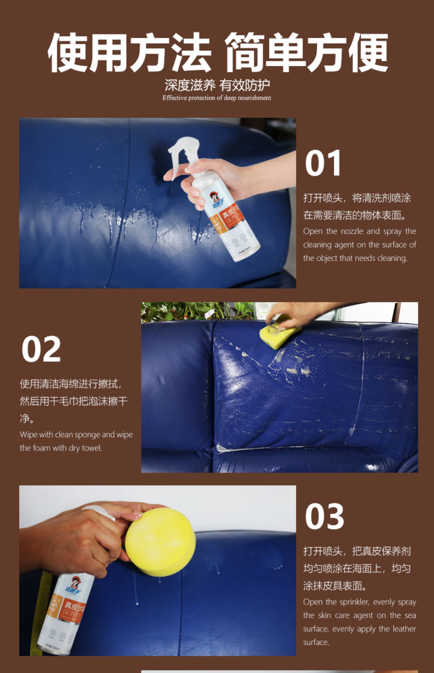 真皮清洁剂【商家吐血5.8冲量】快速清洁,深层滋润,易吸收,不变硬!防止老化,适用于各种皮质产品,皮包,皮鞋,皮沙发,汽车皮座椅等等,易吸收不变硬!一套解决所有问题!一喷一擦干干净净满满一大瓶