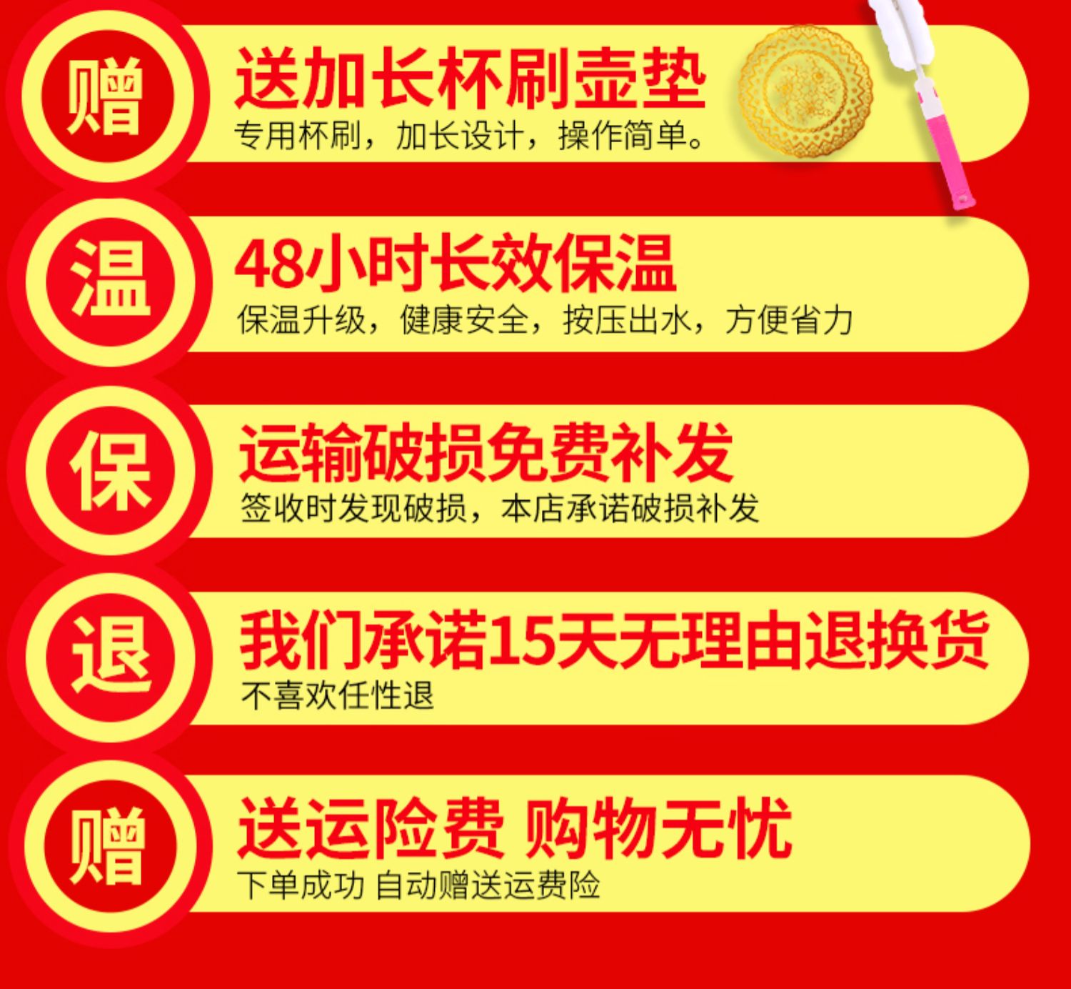 送长刷跟壶垫!!!新型气压式保温瓶,红胆玻璃真空隔热,镀铜内胆健康安全,一键出水轻松操作,温存鲜活长效48小时保温,关注您与家人的饮水健康【赠运费险】