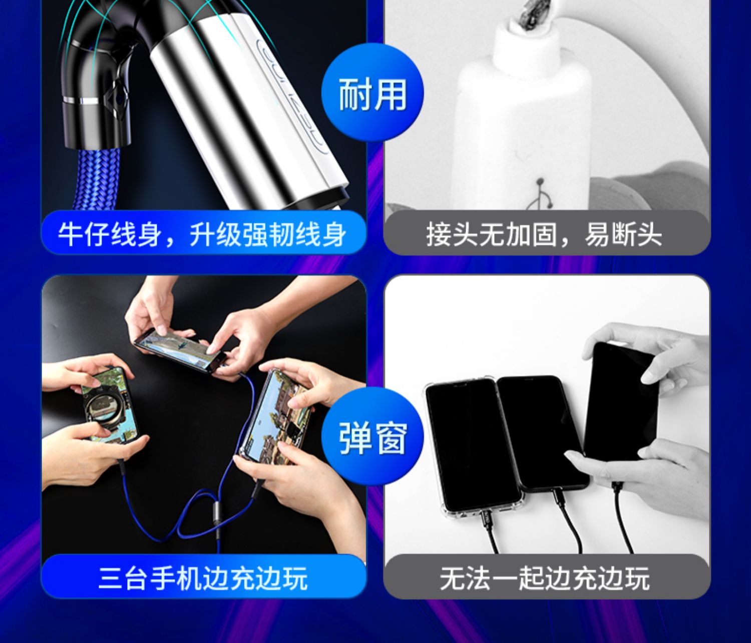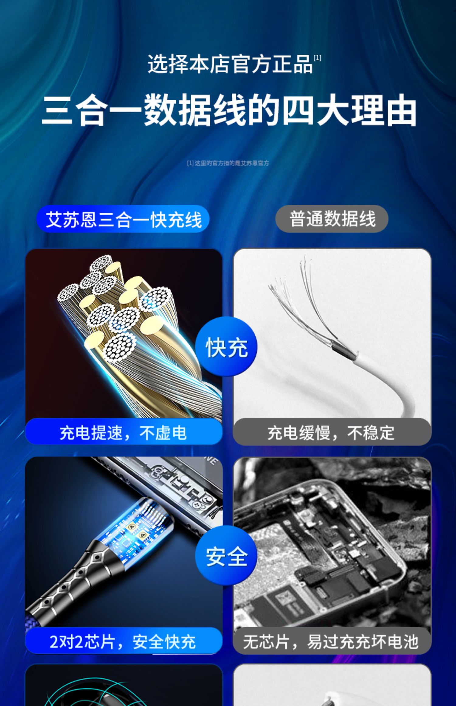 超值装,苹果,安卓,type-C通用,便捷多用,不易变形,够坚韧,够时尚,加固抗弯折,够耐磨,快速充电.极速传输。出差旅行,一根线搞定所有设备,超实惠